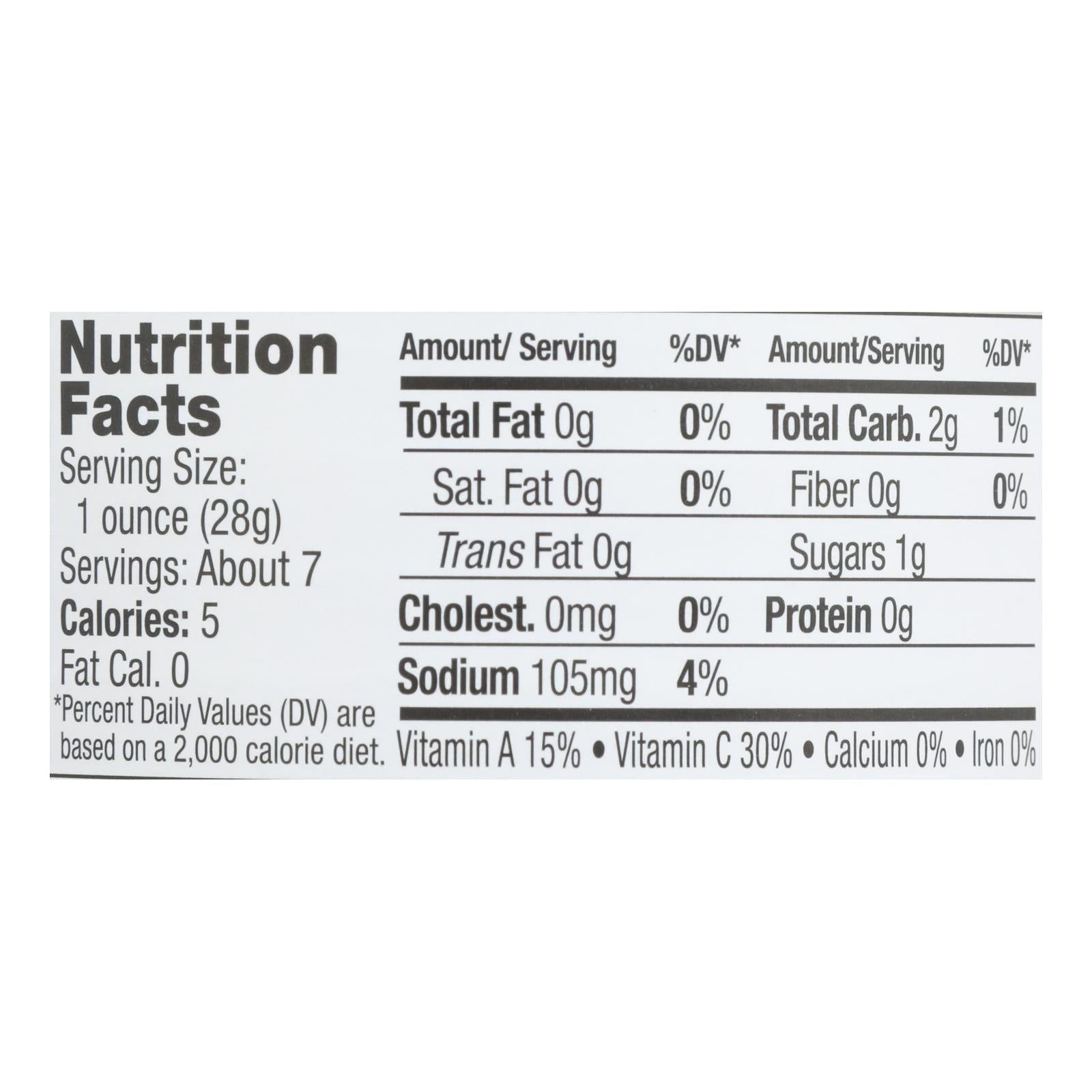 - Contains simple, wholesome ingredients: peppers, water, sea salt, citric acid, and calcium chloride.