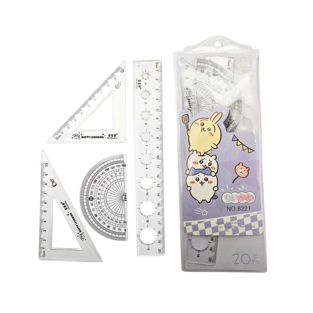 Todo lo que necesitas para tus clases de matemáticas en un solo set: incluye regla, escuadras, transportador y más. Diseño resistente y preciso con gráficos divertidos que lo hacen ideal para niños. ¡Aprender geometría será más entretenido!