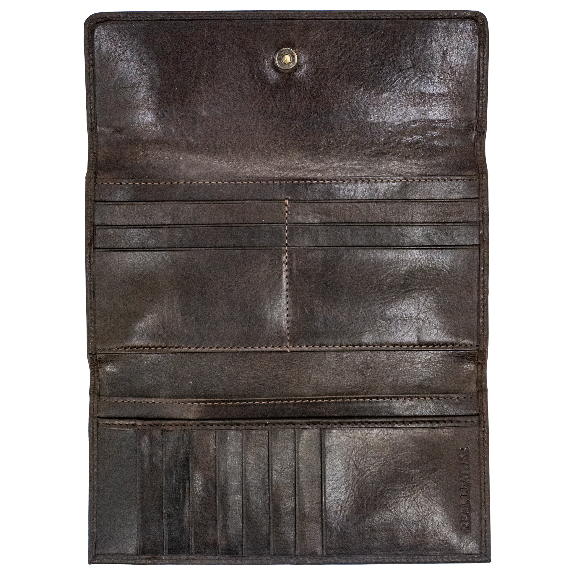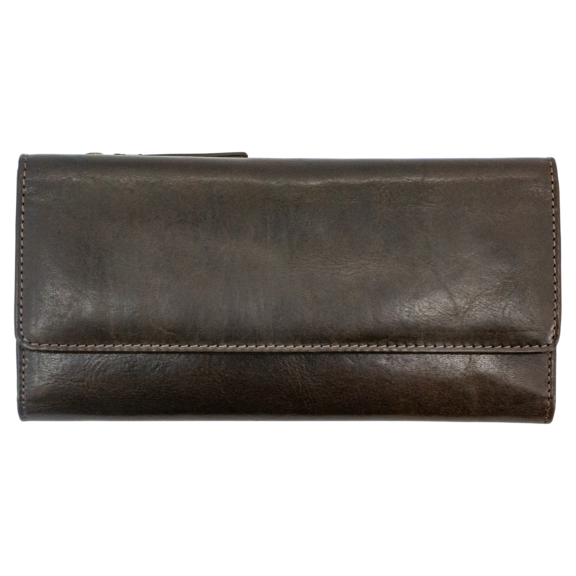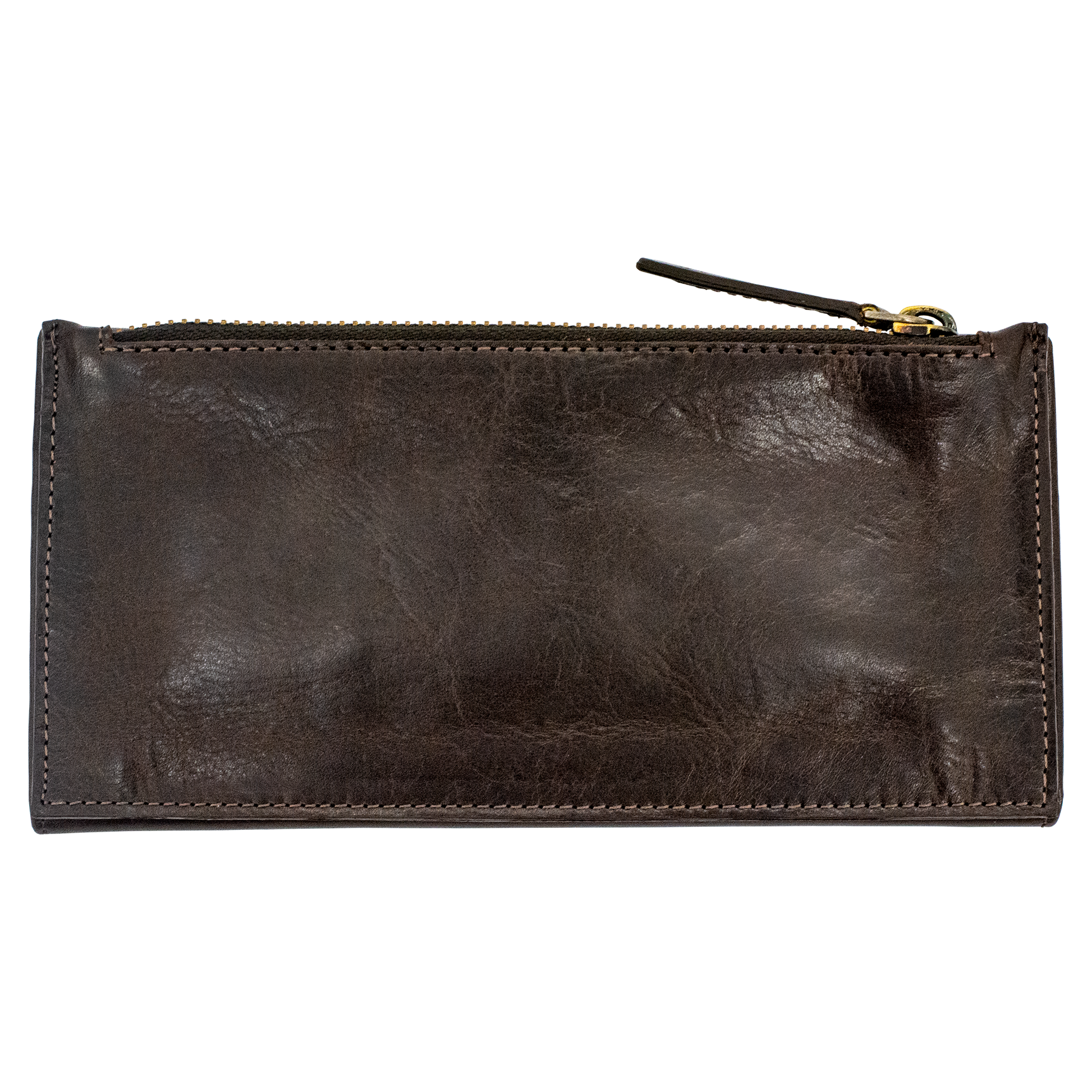 Our Zeus clutch wallet is a timeless design in our Signature Leather featuring 13 interior card pockets, three currency pockets, an exterior lined zip pocket, covered antique brass adjustable snap and our exclusive 2.0 military grade RFID protection.