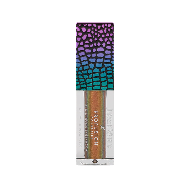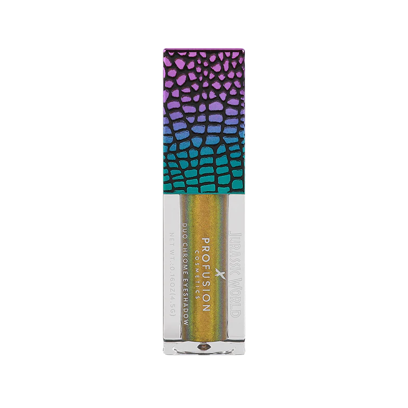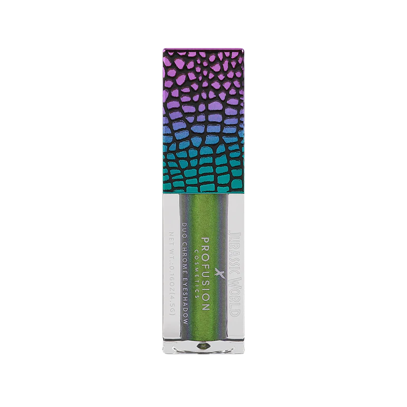 Create fierce looks with these hyper-reflective duo chrome liquid eye shadows, in shades inspired by your favorite Jurassic World dinos! Wear alone or build layers for an electrified finish. For results that truly bite, apply over a matte powder shadow in a similar color!