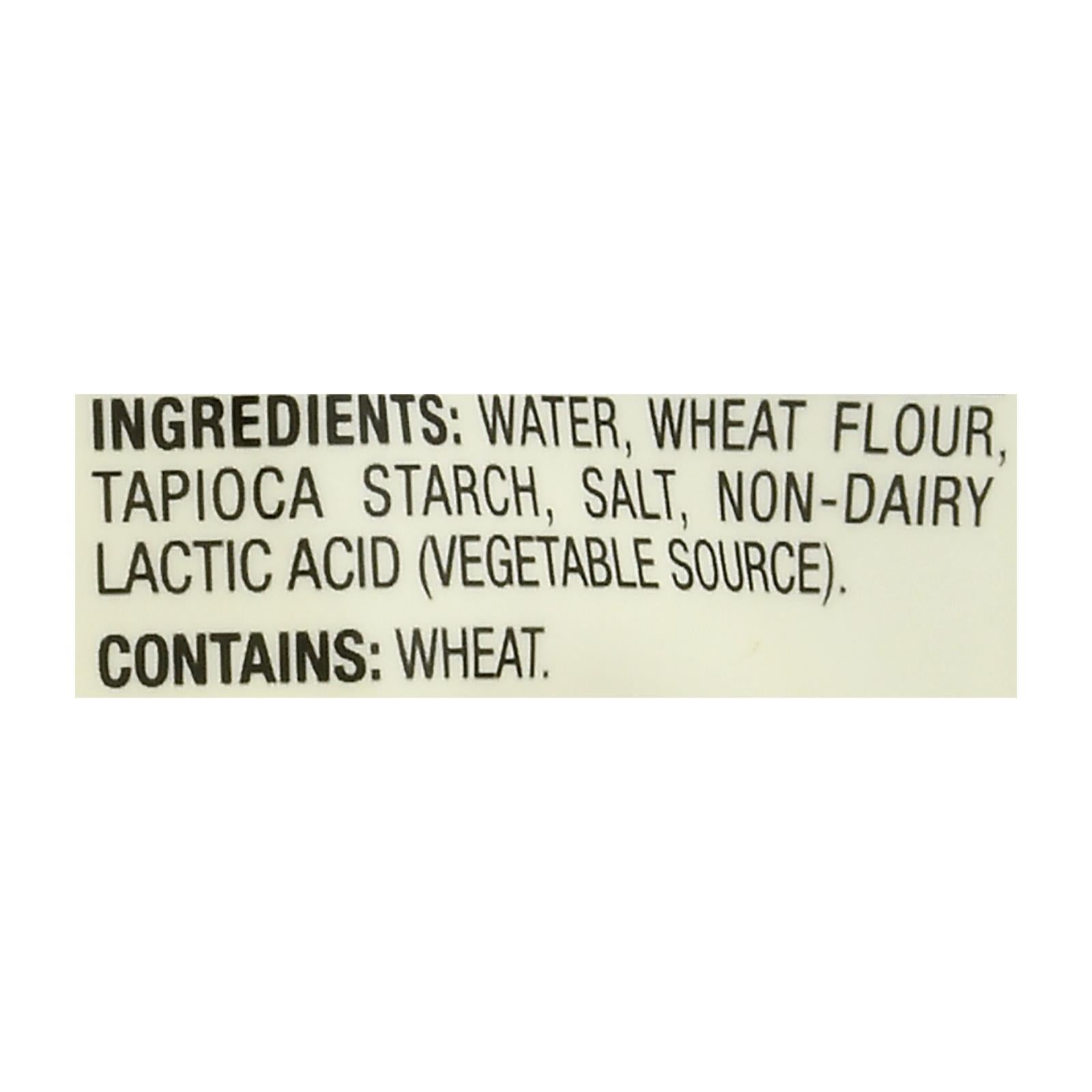 - Made with high-quality ingredients: water, wheat flour, tapioca starch, salt, and non-dairy lactic acid