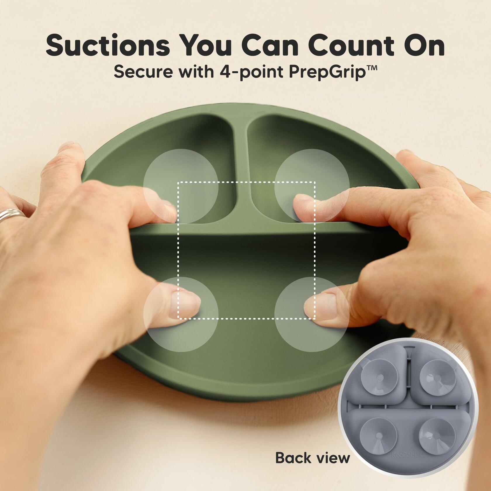 - Best Suction Plates - KeaBabies Prep Silicone Plates feature extra-strong PrepGrip Suctions that stick firmly to any flat surface on high chairs/tables. This prevents your baby from tipping or tossing their plate, encouraging independent, mess-free eating.