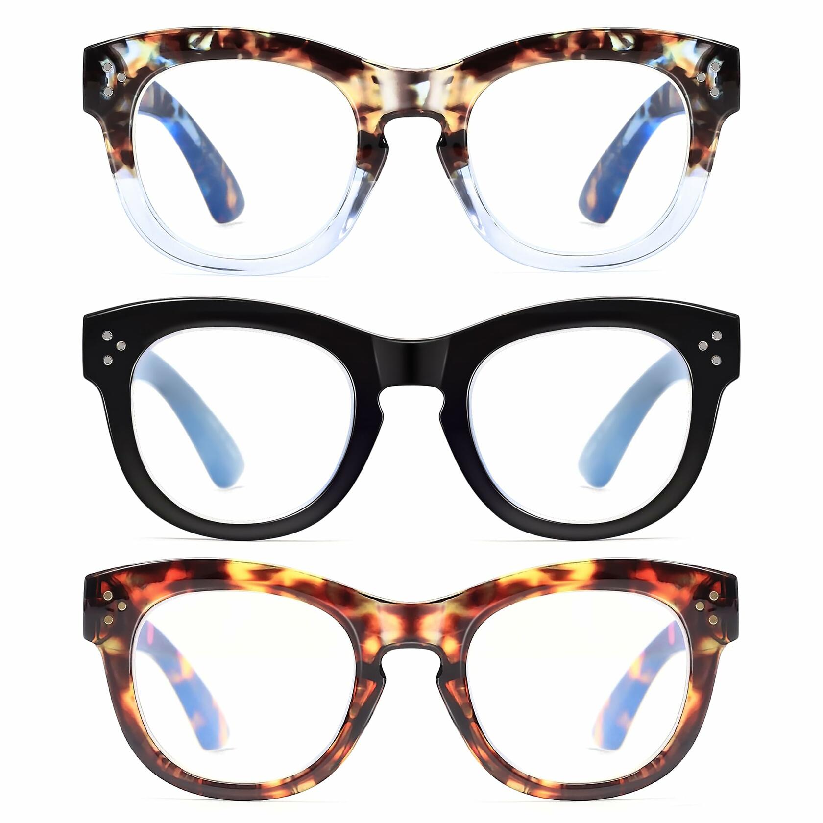 LADEESSE 3 Pack Oprah Style Reading Glasses +2.50 Blue Light Blocking