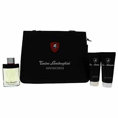 Lamborghini Invincible 4 Pcs Set For Men: 4.2 Eau De Toilette + 5 Oz Shower Gel + 5 Oz After Shave Balm + Briefcase
