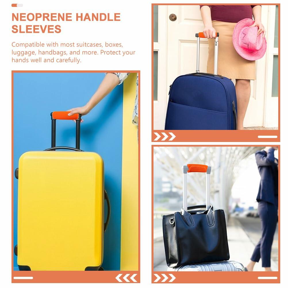 - 👍👍 Neoprene Handle Wrap - Compatible with Most Suitcases, Boxes, Luggage, Handbags, and More. Protect Your Hands Well and Carefully.Neoprene Luggage Handle Wrap Suitcases Handle Grips Soft Stroller Handle Cover Luggage Identifier for Travel Bag Luggage Suitcase