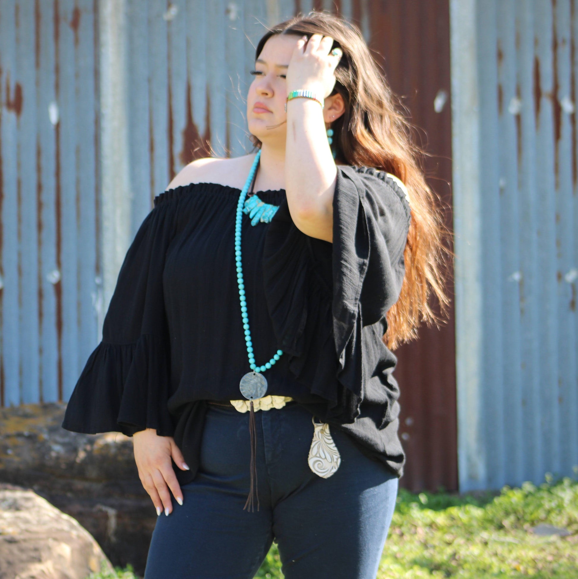 - This turquoise stone necklace is the perfect item to layer with shorter necklaces