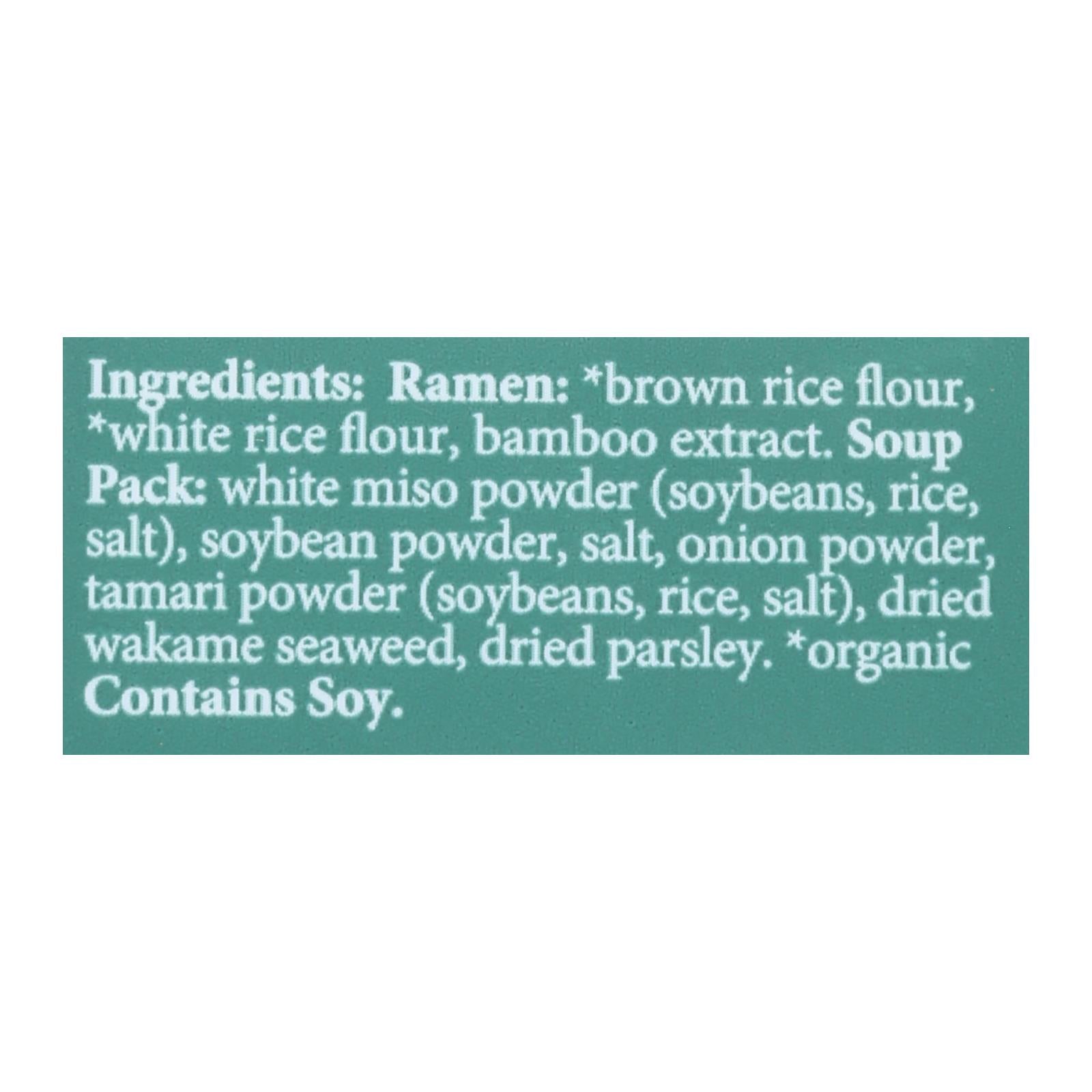 Discover a delightful twist on a classic Japanese dish with this organic jade pearl rice ramen combined with miso soup. This gluten-free option replaces traditional wheat noodles with a blend of three organic rice flours, offering a unique and satisfying texture. The included flavor packet is rich in chlorophyll and imparts a subtle vanilla essence that complements the savory miso base.
