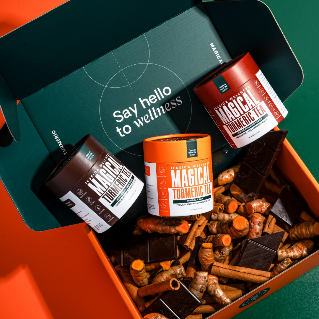 Potencia tu bienestar desde el primer sorbo con nuestro nuevo Magical Turmeric Tea Cinnamon Flavor. La exquisita fusión de cúrcuma y canela no solo deleitará tu paladar, sino que también trabajará para estabilizar tus niveles de azúcar en sangre, controlar los antojos de azúcar, acelerar tu metabolismo y promover una salud digestiva óptima. Esta mezcla transformará tu rutina diaria, ofreciéndote beneficios tangibles para tu bienestar integral.