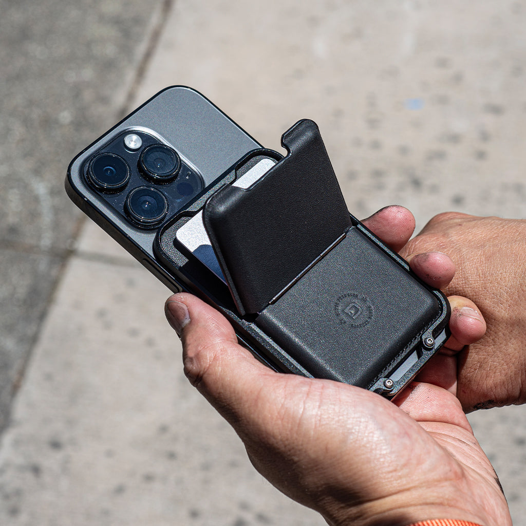 Additionally, the MagSafe Wallet deploys your cards and content with an inner snap back steal hinge that keeps it opened at several lock-points. The hinge mechanism when opened, allows you to use the wallet as a sturdy phone stand, in either portrait or landscape orientations. If you're a one-carry kind of person, you will surely enjoy the MagSafe Wallet.