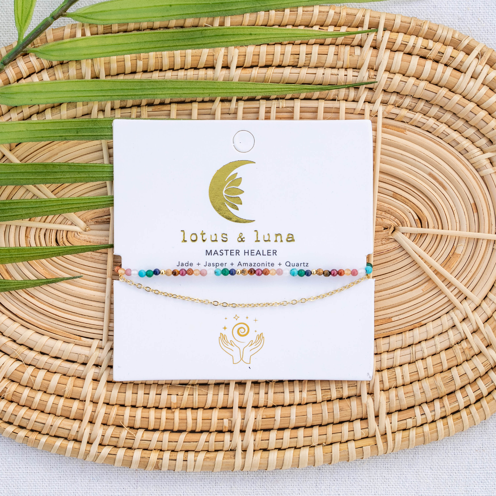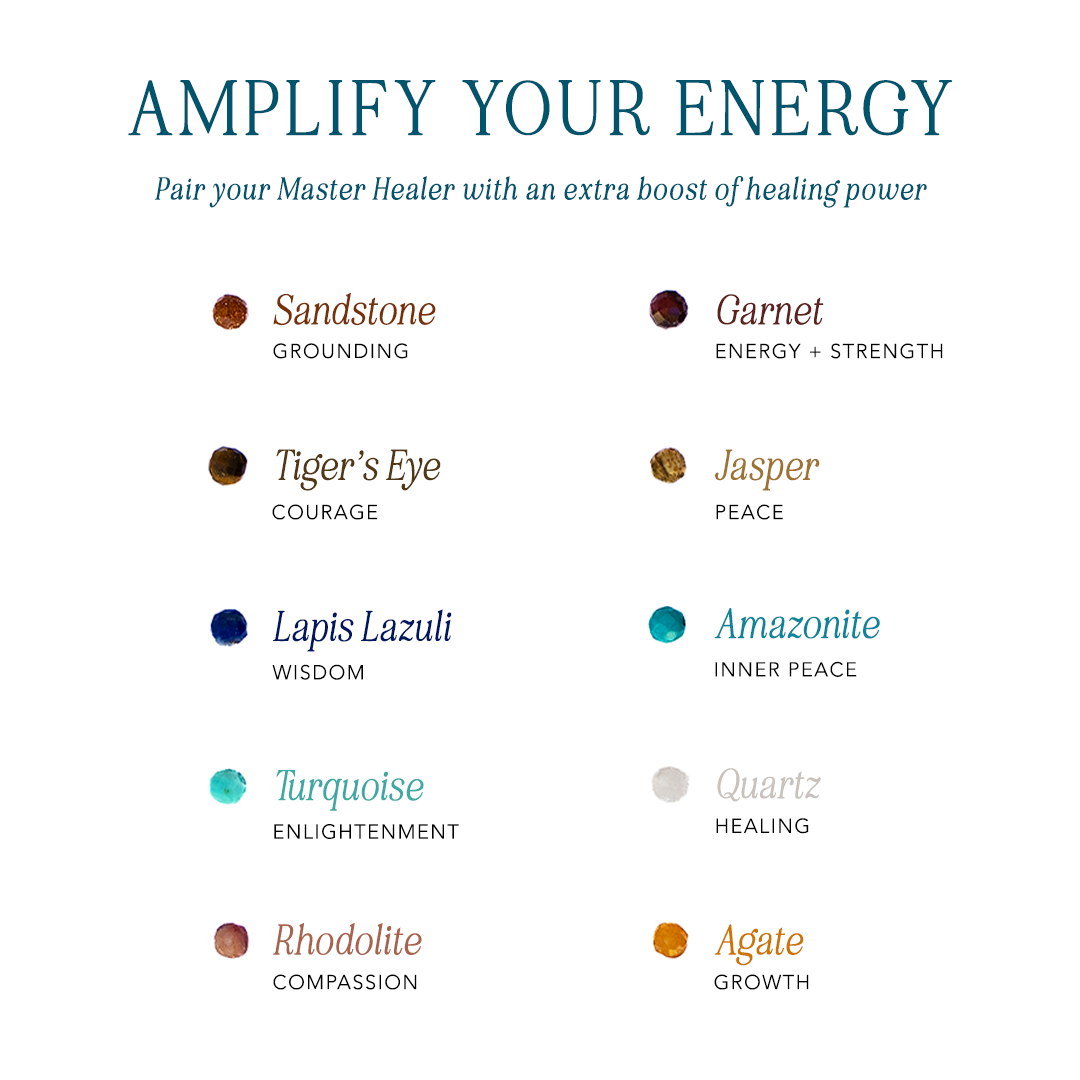Yes, you are seeing double! This divine 2mm healing bracelet has everything a gal needs. Shimmering metal accents, natural healing stones, and a built-in stack! Choose between silver or gold and pair with the matching Master Healer Necklace for an elegant set that you'll never want to take off.