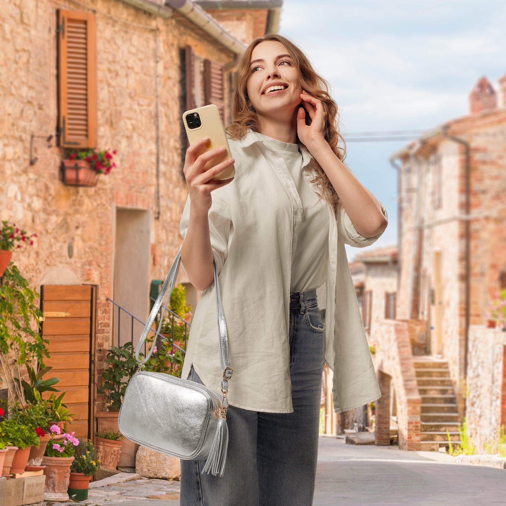 Metallic Suede Leather Crossbody Bag
