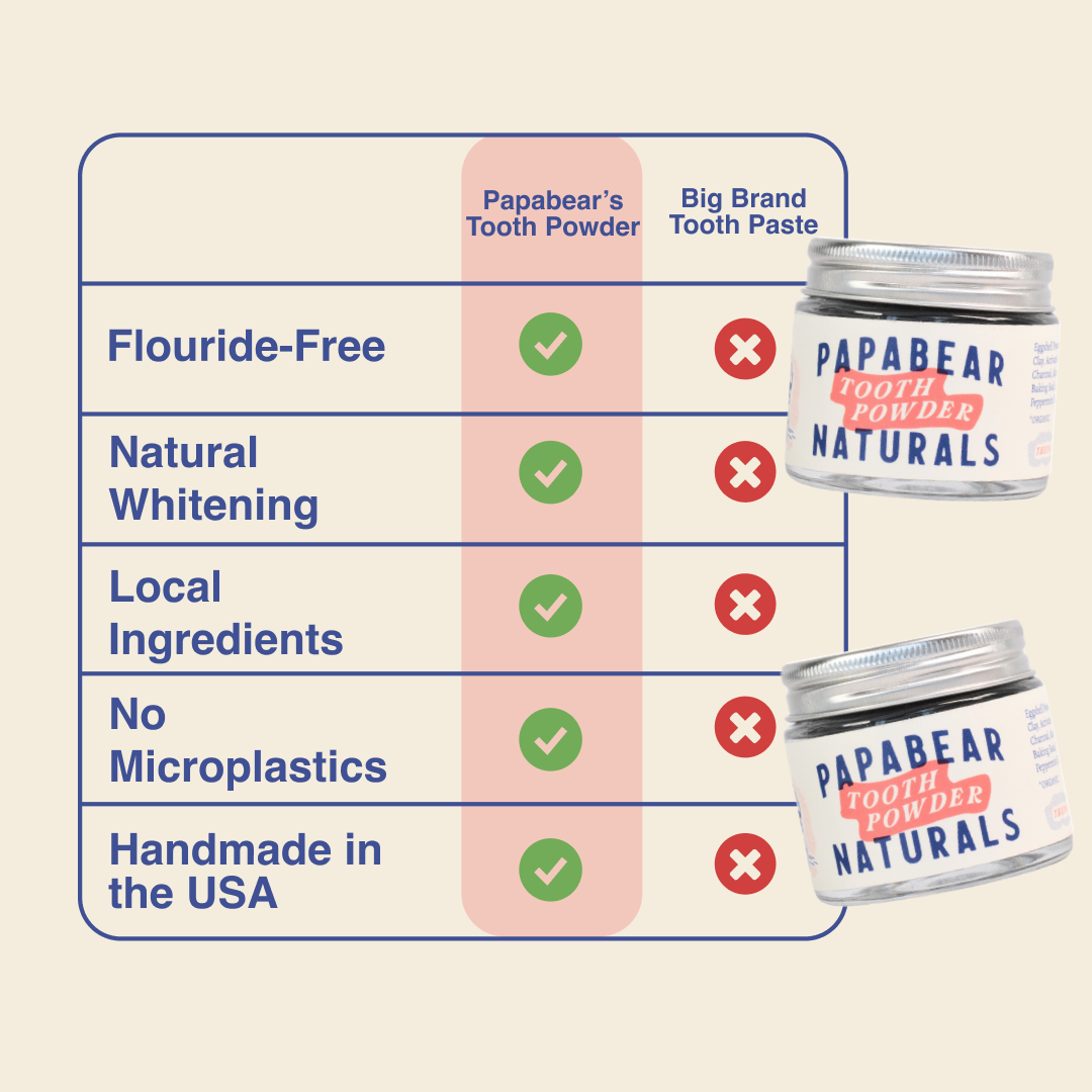 Perfect for everyday use for a brighter and healthier smile. Its blend of organic ingredients, including eggshells, Bentonite Clay, Baking Soda, Activated Coconut Charcoal, and Peppermint essential oil, effectively cleans, strengthens and whitens. It also addresses tooth decay by strengthening your enamel and combating cavity-causing bacteria. It promotes gum health by detoxifying and reducing the risk of gum disease. Additionally, its gentle abrasive action alleviates tooth sensitivity and helps prevent tooth loss.