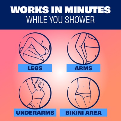 The new Nair experience! Say hello to blade-free, hair-free, carefree skin that stays smooth days longer than shaving. And we’ve made it better: our new and improved Scent-sational scented formula smells amazing! This new fragrance technology uses natural extracts that blend notes of creamy coconut, warm amber and clean musk give this hair remover soothing scent. With only the essential ingredients you need, our body cream is now free of dyes, parabens, phthalates and sulfates. This powerful body hair removal cream works to remove coarse, thick hair on your body and legs while you shower. Fast and easy, Nair shower cream thoroughly removes body hair below the skin’s surface for painless hair removal. Nair body and leg hair remover shower cream can be used on the legs, arms, underarms and bikini area, but it is not formulated for use on the face. Trusted since its introduction in 1940, Nair has always been a leader in hair removal. For all skin types. Always patch test before use (see instructions).