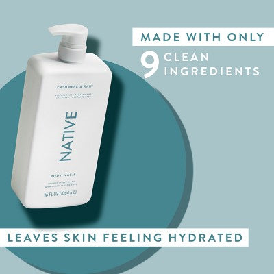 Native Body Wash for Women & Men Cashmere & Rain Sulfate Free with Pump 36 fl oz - New
