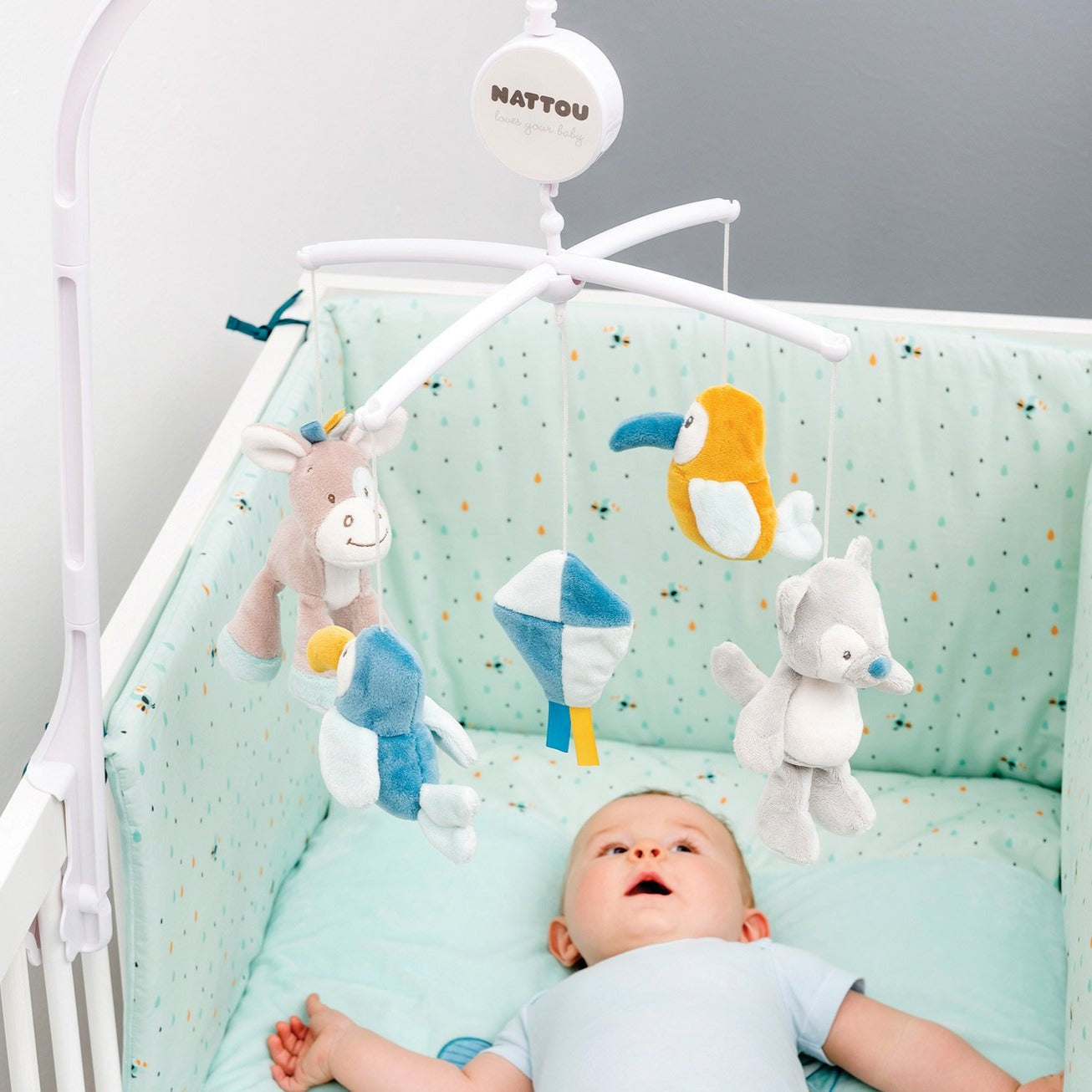 - Mobile with cute cuddly toys- soothing lullaby "La-Le-Lu" to fall gently asleep and have sweet dreams