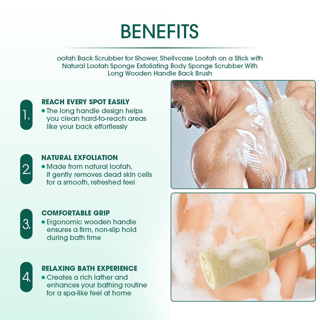 All-natural, eco-friendly, zero-waste loofah with a long handler can be used for bathing or showering, body scrubbing removal, and leaving skin soft and smooth.