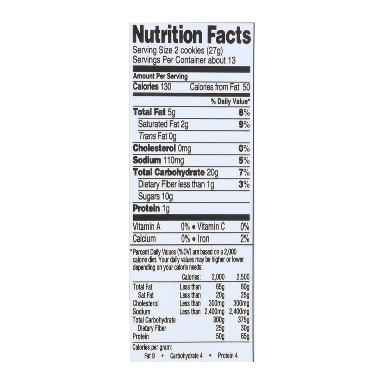 Indulge in the rich, chocolatey goodness of these crème-filled cookies, crafted with care and natural ingredients. Perfect for those who value quality and taste, these cookies are free from artificial colors, flavors, and preservatives, ensuring a wholesome snack option. Each 13 oz bag offers 13 servings, with only 130 calories per serving, making it a guilt-free treat.