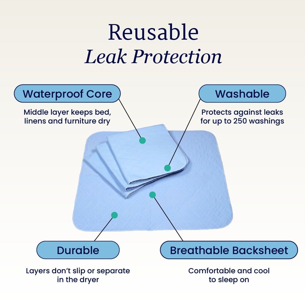Exclusively available at NorthShore, these underpads combine convenience, performance, and unbeatable value. They're designed with layers that stay intact even after multiple trips to the dryer, so you can count on their durability. The comfortable quilted top-layer is gentle against the skin, making repositioning a breeze. The discreet NorthShore blue color conceals wetness, ensuring that your protection remains private.