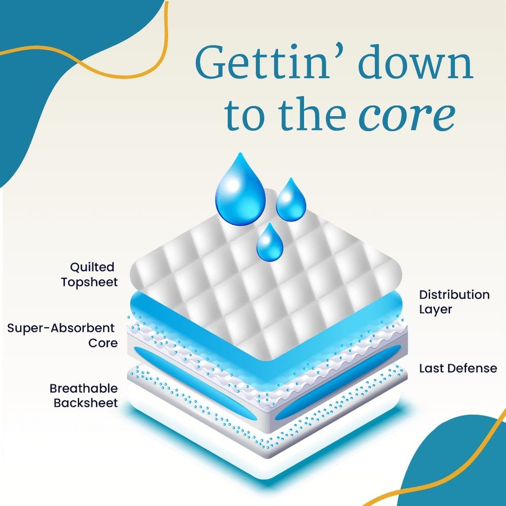 Soft and Breathable Backsheet: Our breathable cloth-like waterproof exterior is not only durable but also resistant to sagging and odors, even at full capacity.