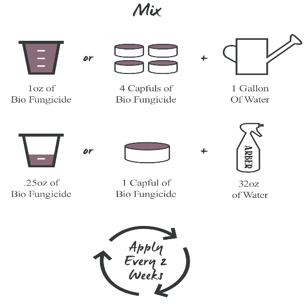 - Apply directly to soil or apply to leaves. One application every 10-14 days for wellness and every 5-7 days for major disease control.