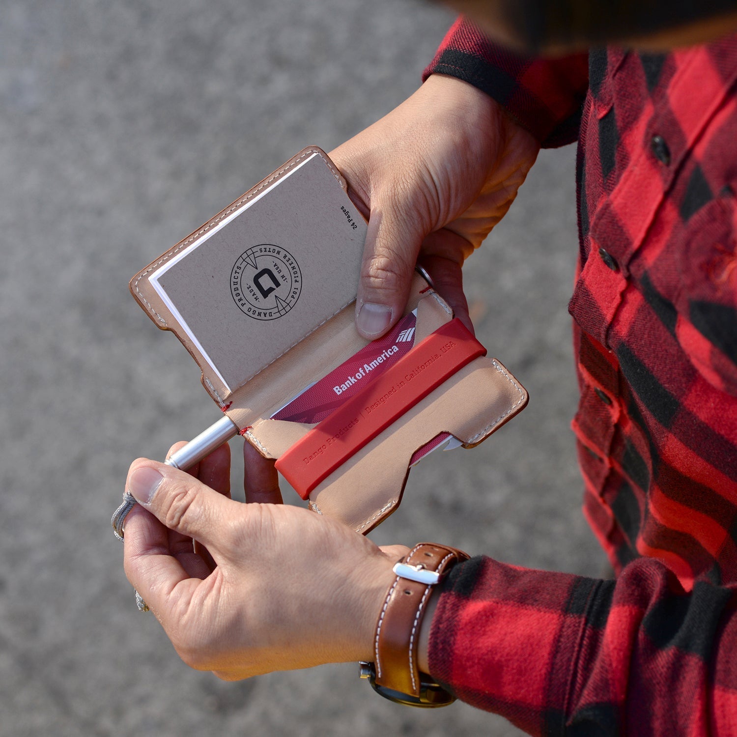 The Dango Notebooks are compact and durable for everyday carry. They are handmade in USA with stitch binding for flexibility and comfort. A natural finish, card-stock cover protects the inner pages. The inner pages absorb ink for instant permanence.