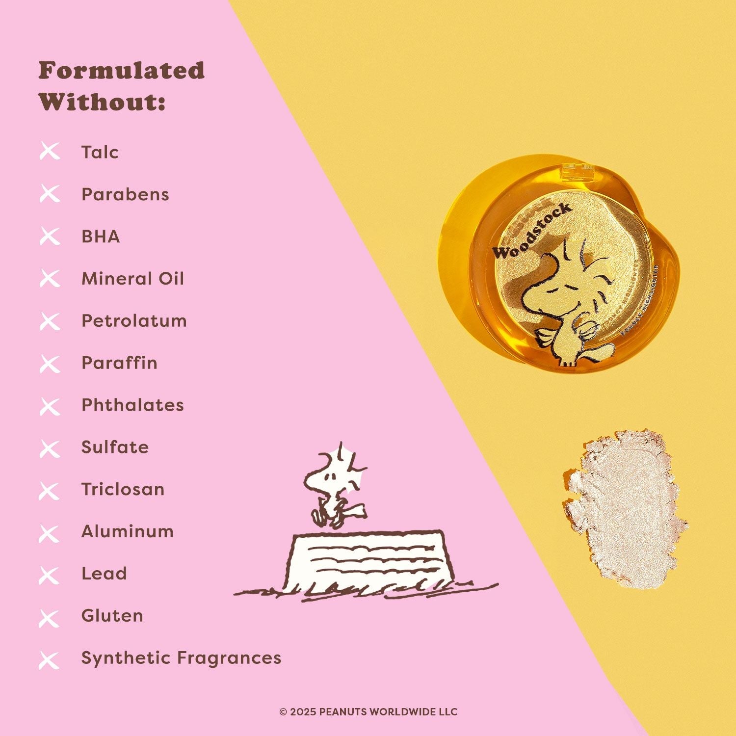 Infused with nourishing ingredients, the Peanuts x Profusion Bouncy Highlighter brightens your skin while keeping it feeling fresh and hydrated. Whether you’re looking to channel the carefree energy of Woodstock or simply want a radiant boost, this highlighter is your go-to for effortless, all-day glow.