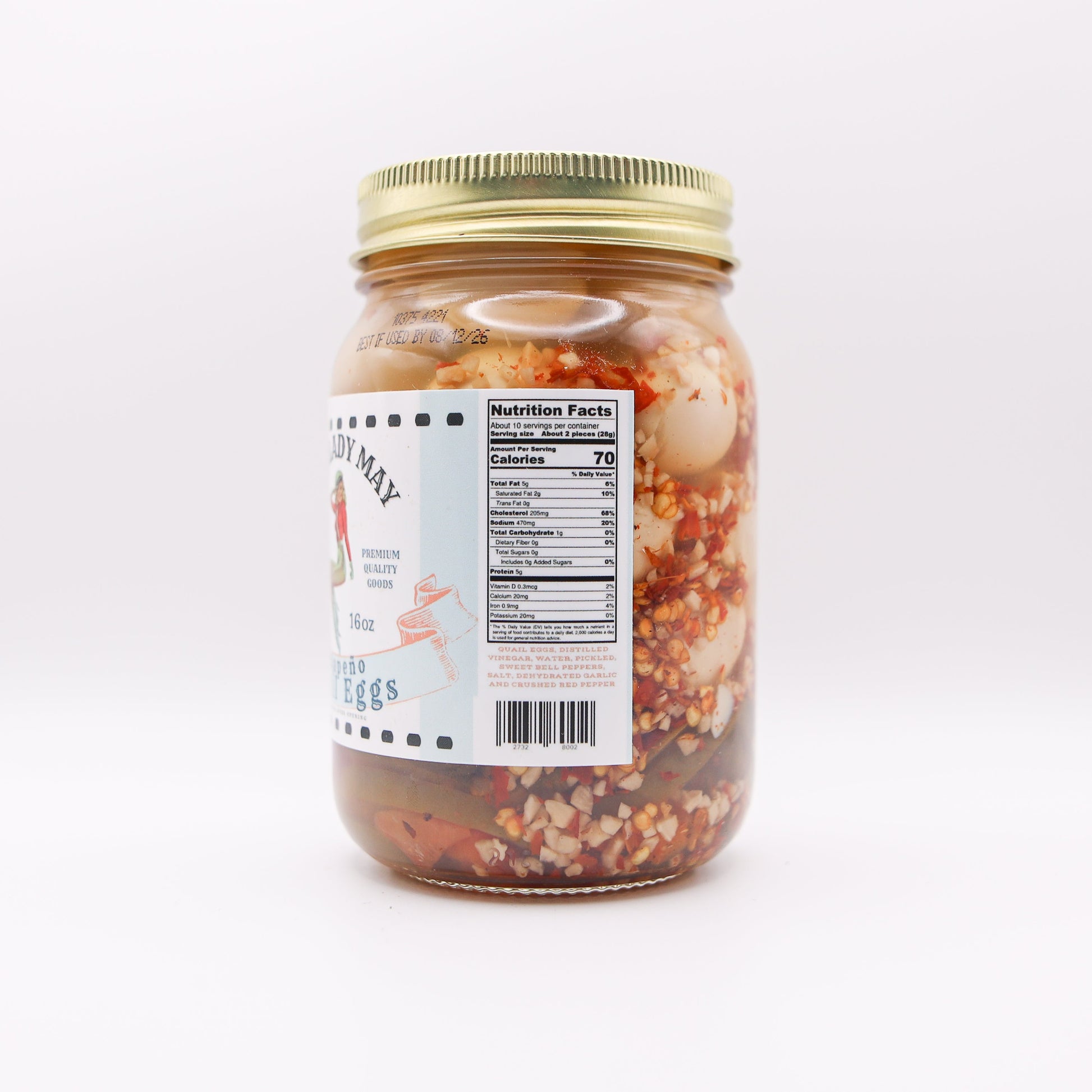 Our small batch process means that each customer gets only the best product possible. So if you're looking for a delicious and unique pickle to spice up your next meal, look no further than May's Pickled Jalapeño Quail Eggs.