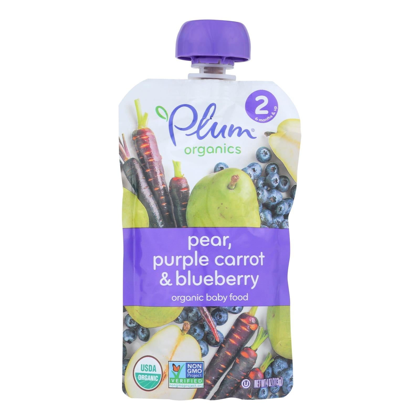 Plum Organics Baby Food Organic Blueberry, Pear & Purple Carrot Puree - 6 Pack (3.5oz Pouches)