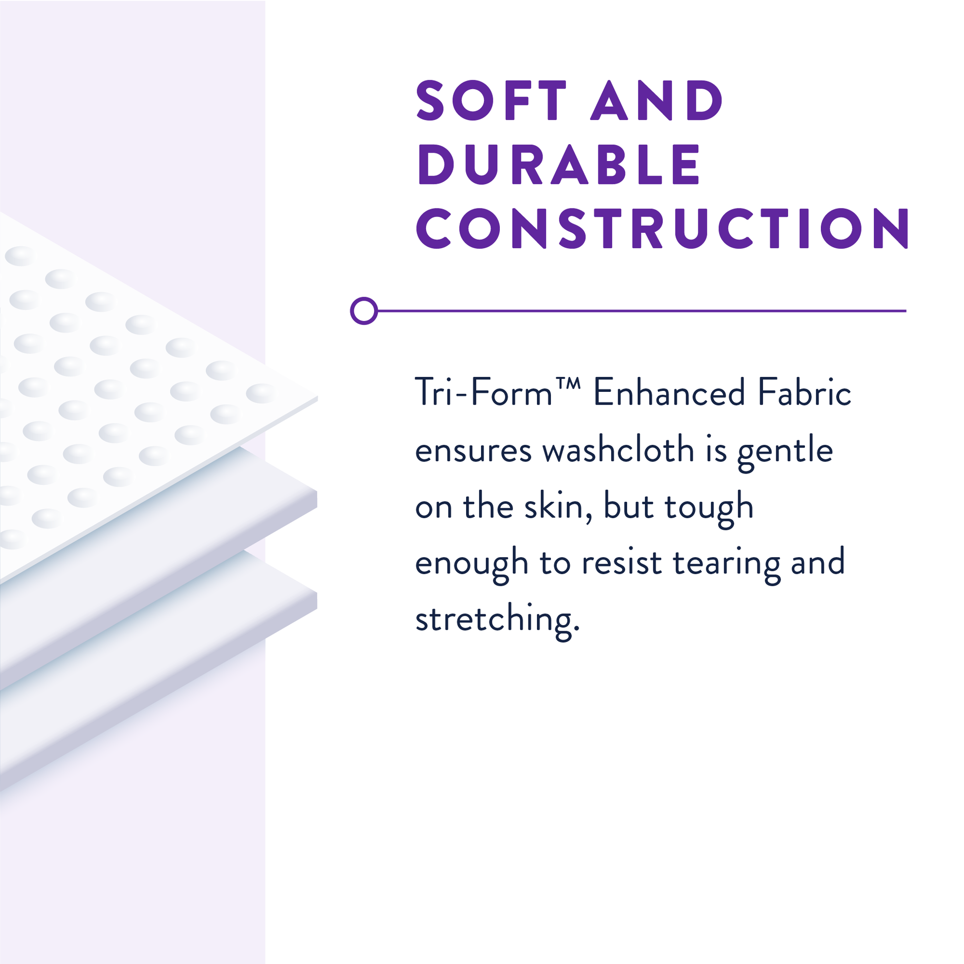 Prevail® Quilted Washcloths are engineered to clean and refresh the skin following leaks or product changes. The thick, quilted texture ensures thorough cleansing that's gentle on skin. Each wipe is hypoallergenic and enhanced with Lotion, Vitamin E, and Aloe to protect and soothe on a daily basis. Single-Hand Dispensing® allows you to grab one wipe at a time while triple-layer fabric makes each wipe durable so that clean-up is quick and waste-free.