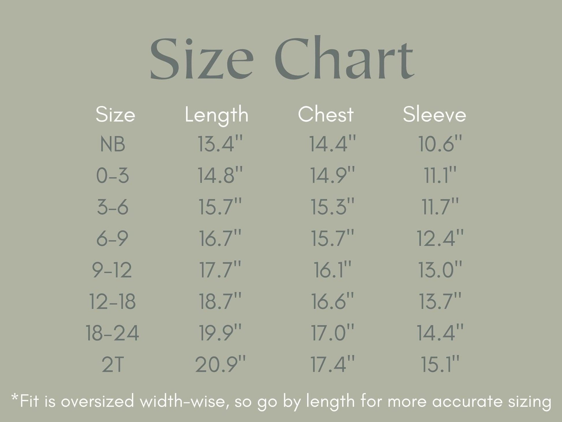 Available in sizes from newborn to 2T, our romper boasts an oversized fit. We recommend referencing the size chart in the photos and suggest sizing down if you're unsure. This ensures the perfect fit for your little one, allowing them to move freely and comfortably.