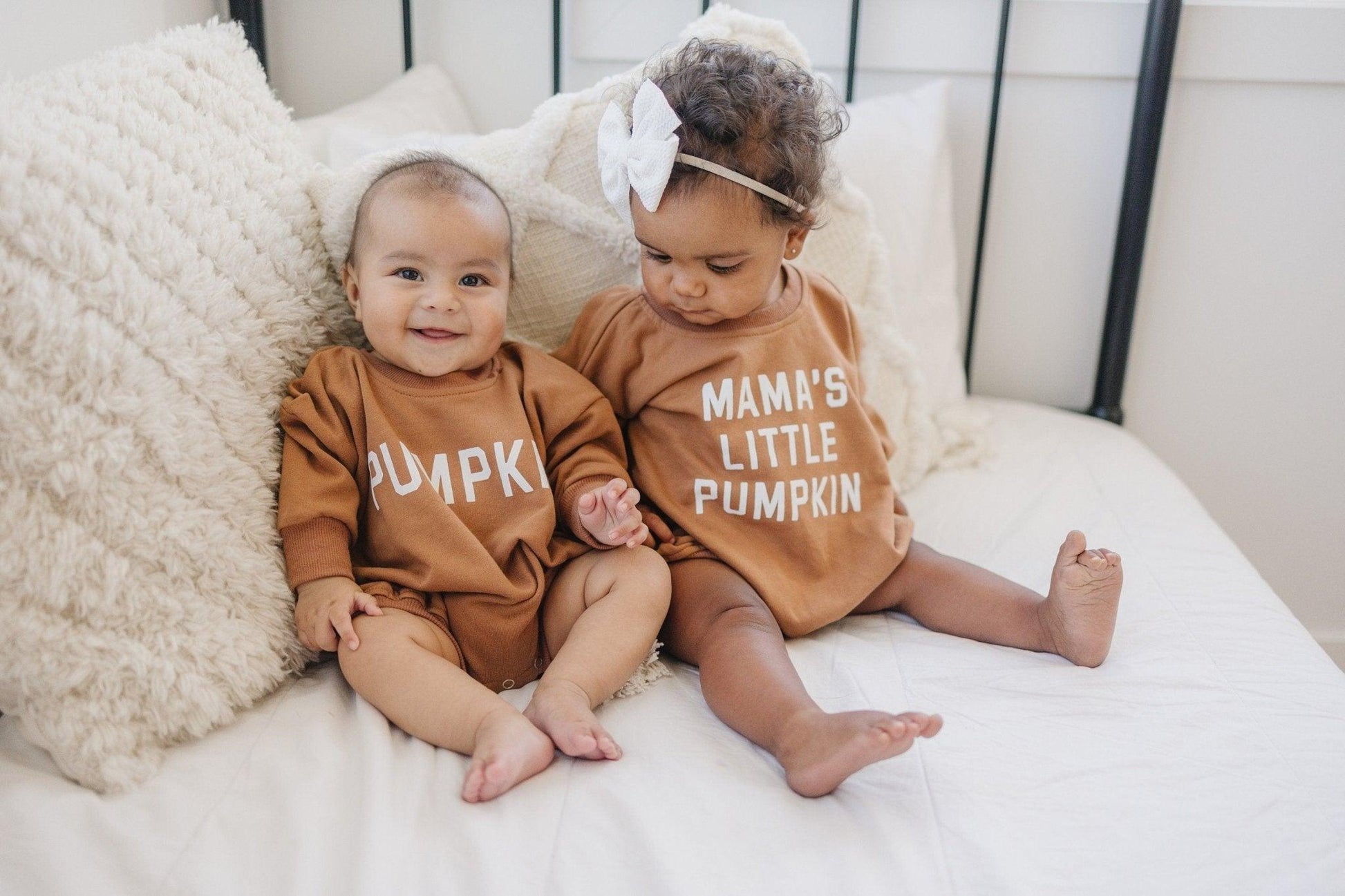 "Pumpkin" Graphic Oversized Sweatshirt Romper - Embrace autumn vibes with this cozy and stylish oversized sweatshirt romper. Featuring a convenient snap closure at the crotch, it guarantees easy dressing and diaper changes. Made from a high-quality French terry material consisting of 83% cotton and 17% polyester, it offers comfort and versatility. The charming "Pumpkin" design is screenprinted, ensuring a durable and vibrant look without the risk of lifting or peeling. Get ready to welcome the fall in comfort and style!