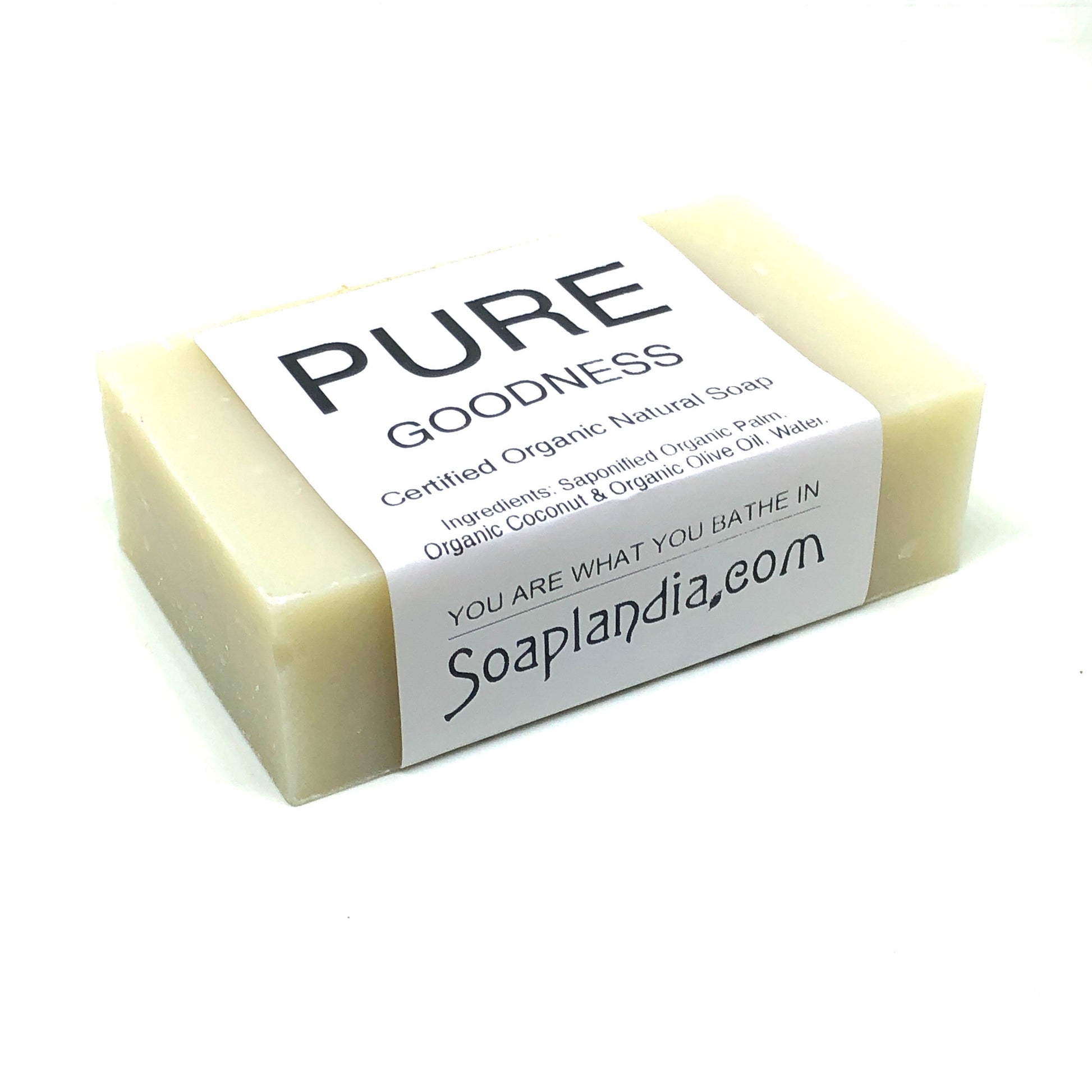If you are looking for truly pure, basic and suitable-for-all bar soap, search no more. "Pure Goodness" soap is great for everyone's skin! This bar is 100% natural, vegan, certified organic, honestly pure and plain, without any fragrance or color. And, because of the purity, this soap is eco-friendly. Yay! Great for adults, teens, babies, kids and anyone with normal or problematic, sensitive or very sensitive skin. We love this bar for it's honest purity! Nothing is added, literally.