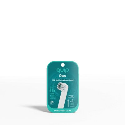 quip Rev Oscillating Brush Heads are compatible with any quip Rev Oscillating Rechargeable Electric Toothbrush, a brush that revolves around your personal oral care needs. Remove up to 11x more plaque from between teeth* with soft bristles that are great for sensitive teeth and gums. To get the best clean, replace brush heads on a dentist-approved schedule every 3 months before they are old, worn out, and ineffective. Make a simple switch to electric with quip Rev, accepted by the American Dental Association.