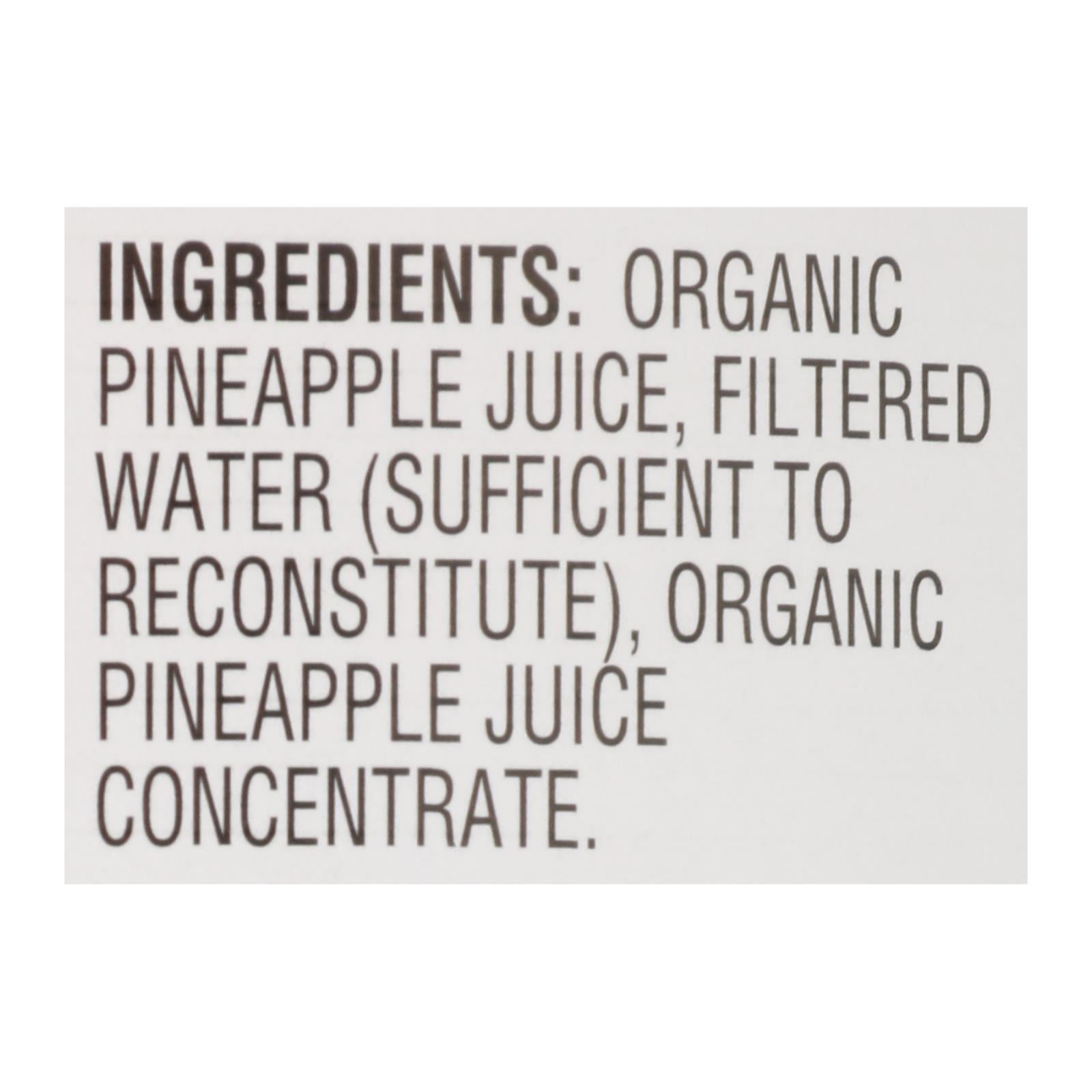 RW KNUDSEN'S ORGANIC PINEAPPLE JUICE IS MADE FROM 100% PINEAPPLE CONCENTRATE. IT'S ALL-NATURAL, SO THERE ARE NO PRESERVATIVES, ARTIFICIAL COLORS OR ADDED SUGAR. EVERY 32 FL. OZ. BOTTLE IS CERTIFIED ORGANIC AND NON-GMO AND PASTEURIZED FOR YOUR SAFETY. EACH CUP OF JUICE IS EQUIVALENT TO ONE SERVING OF FRUIT.