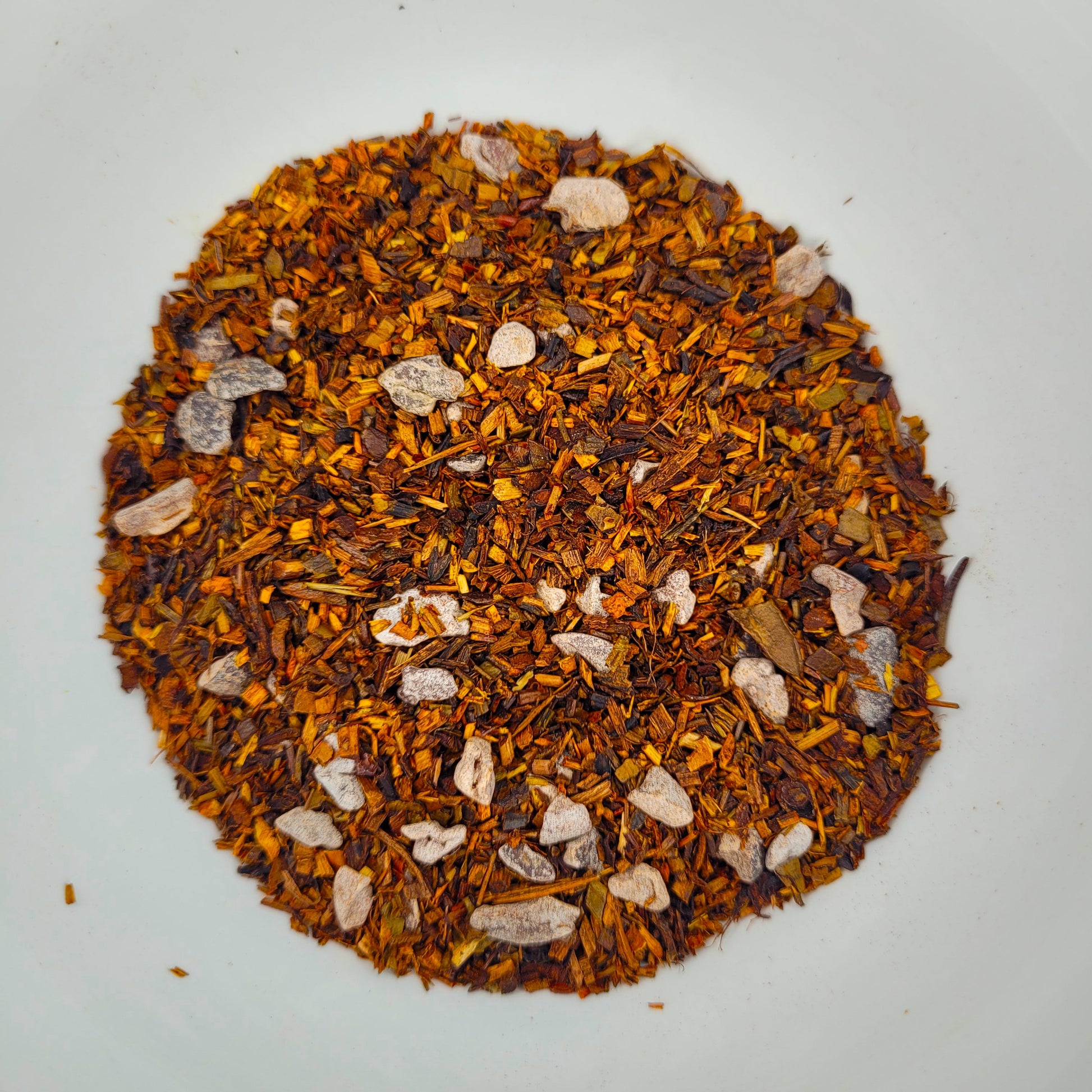 DESCRIPTION: Hit up that sweet tooth of yours by picking up this sweet tasting (with no added sugars or sweeteners) honeybush/rooibos tea to hold you over