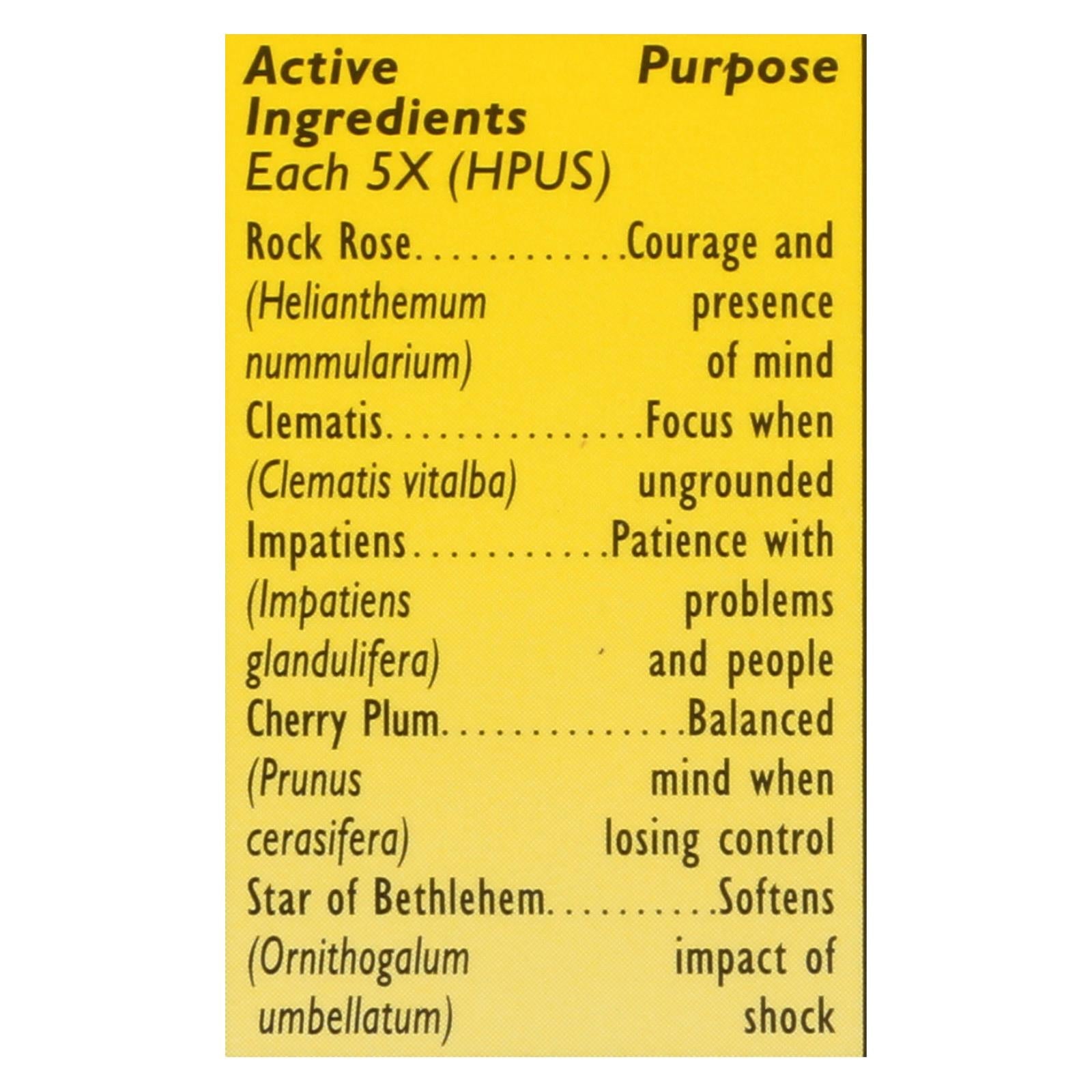 - Includes active ingredients like Rock Rose, Clematis, and Cherry Plum