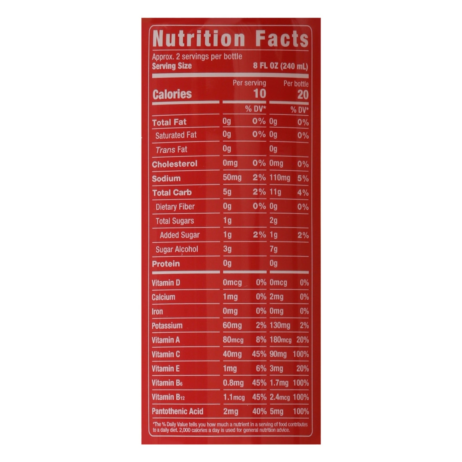 Antioxidants. Vitamins. Electrolytes. Complete Hydration: Electrolyte infused hydration. Vitamins: C, B5, B6, B12 100% daily value per bottle. Antioxidants - Excellent source A, C, E. Organic - Coconut water from concentrate.