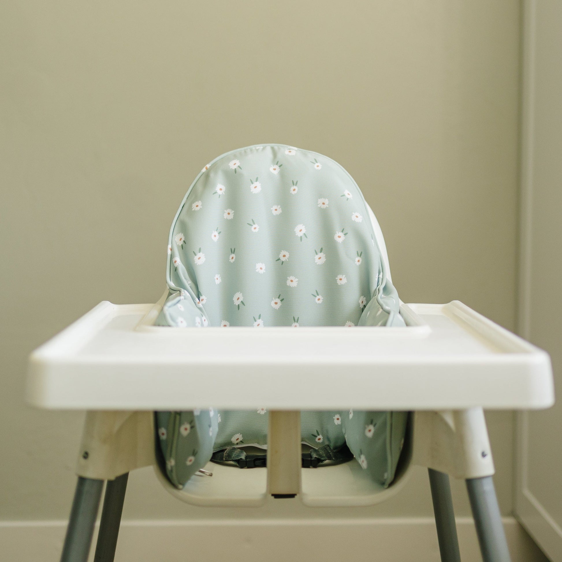 Tiny white daisies printed on pale green! Wipeable cushion cover for the IKEA Antilop Highchair
