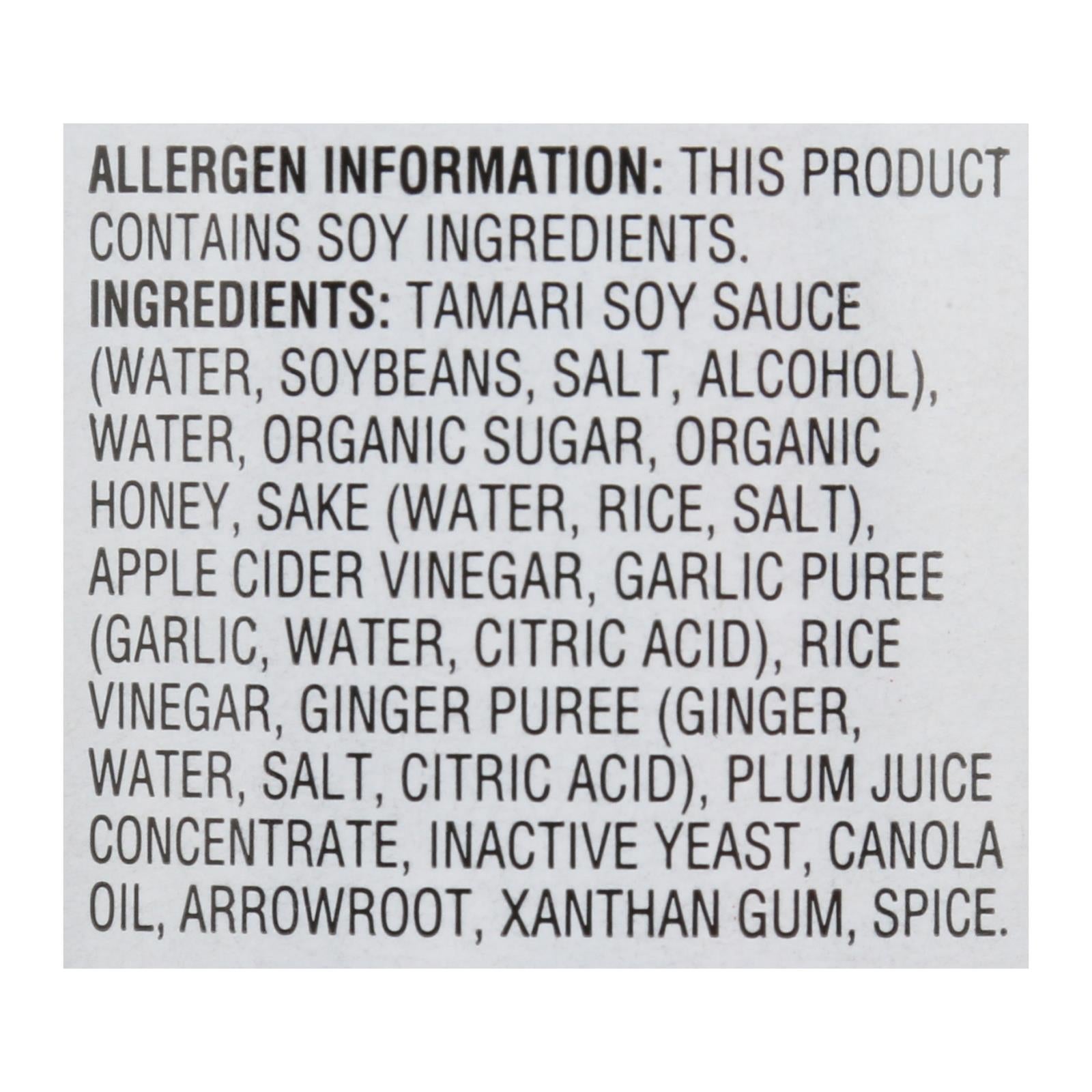 Made in the United States, this sauce combines tamari soy sauce, organic sugar, and ginger puree for an exquisite taste. Whether you're preparing a quick stir-fry or marinating your favorite protein, this sauce offers a delightful Japanese-inspired flavor that enhances your culinary creations.