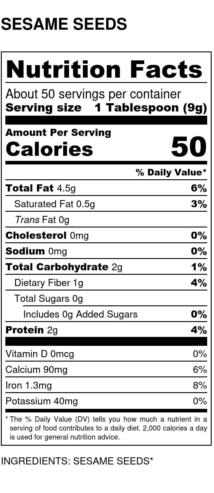Allergen Statement: Product packed in a facility that also handles nuts, peanuts, soy, sesame, and wheat. 1 lb and 5 lb sizes only.