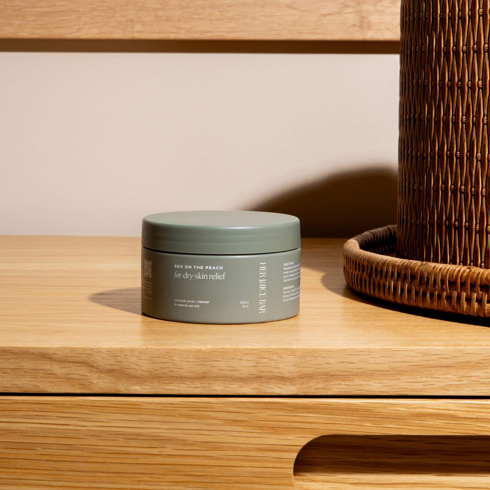 Dive into the hydrating embrace of 'Sex on the Peach,' a full body scrub designed for those battling dry and flaky skin. This scrub is your secret weapon for an intensive moisture boost, ensuring every inch of your skin is pampered and nourished.