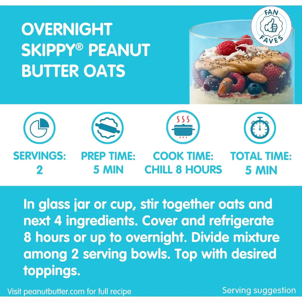 - Enjoy Anytime: Whether it's breakfast, lunch, or a midnight snack, Skippy Creamy Peanut Butter is there to satisfy your peanut butter cravings whenever they strike.