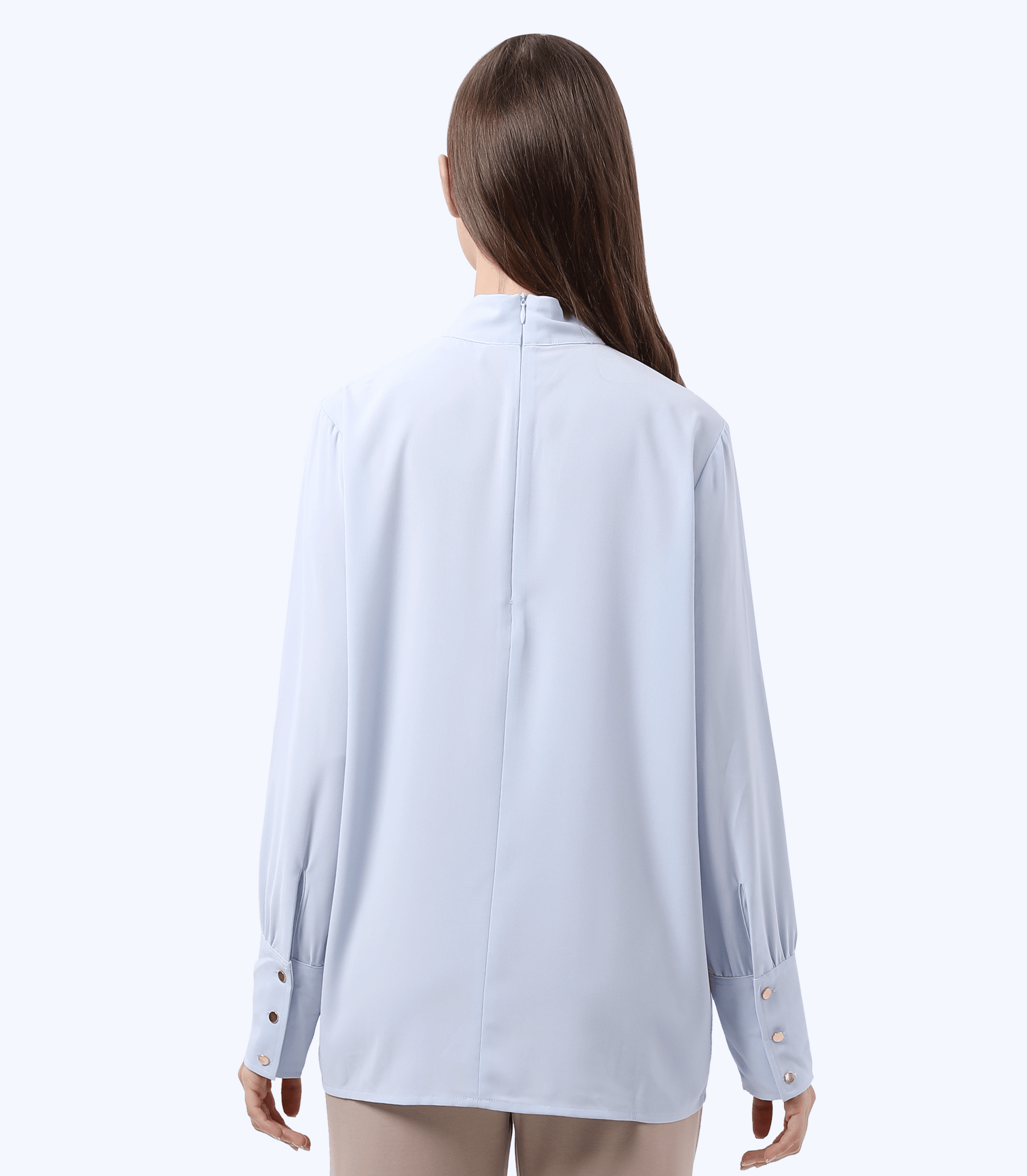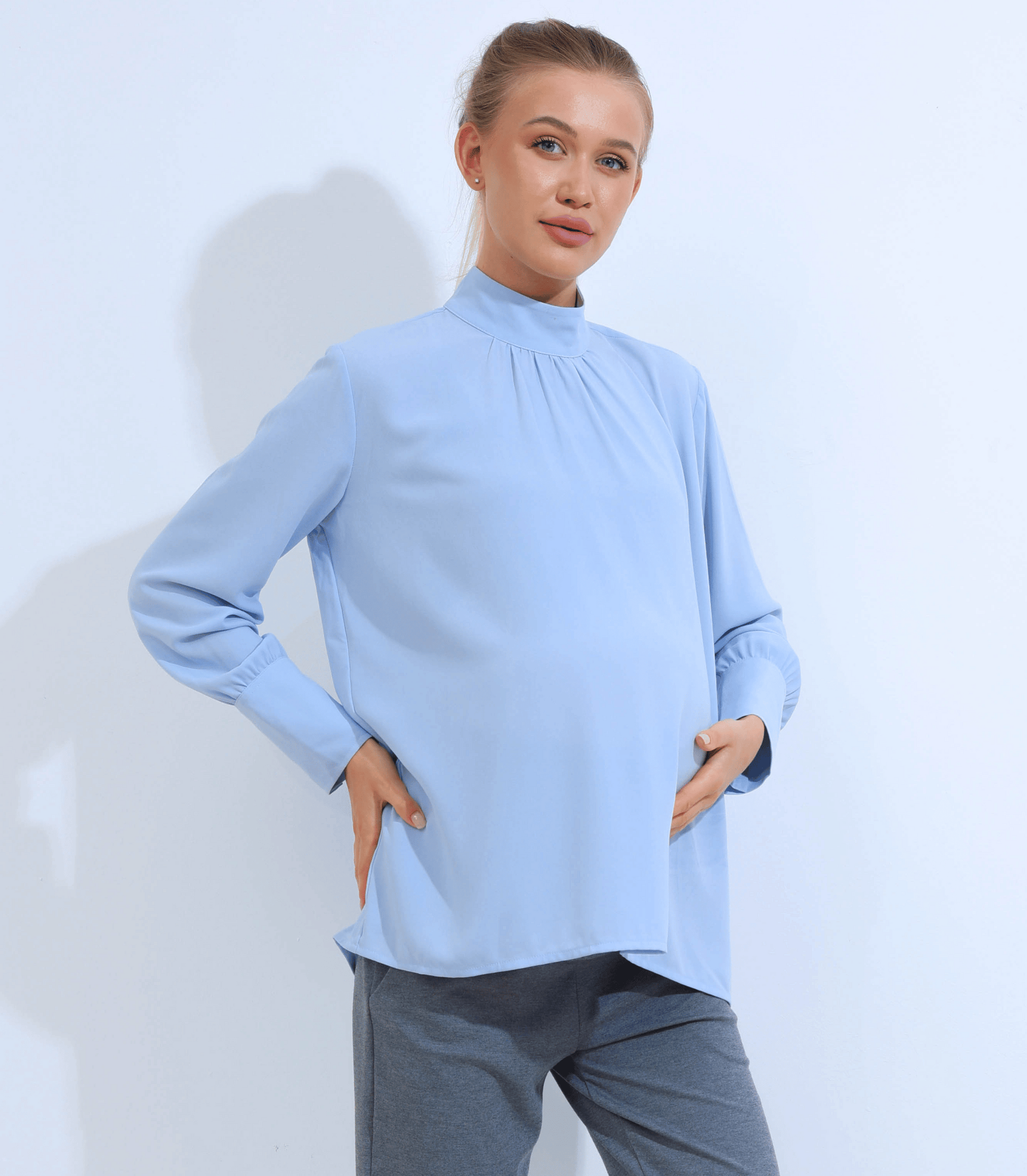 Sky Blue Long Sleeve Mock Neck Maternity Blouse