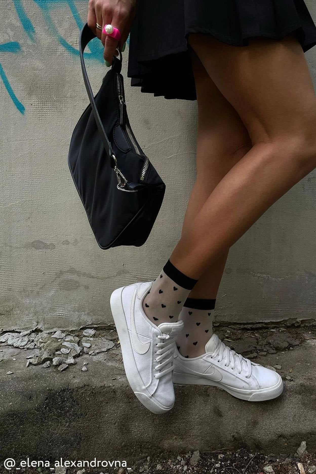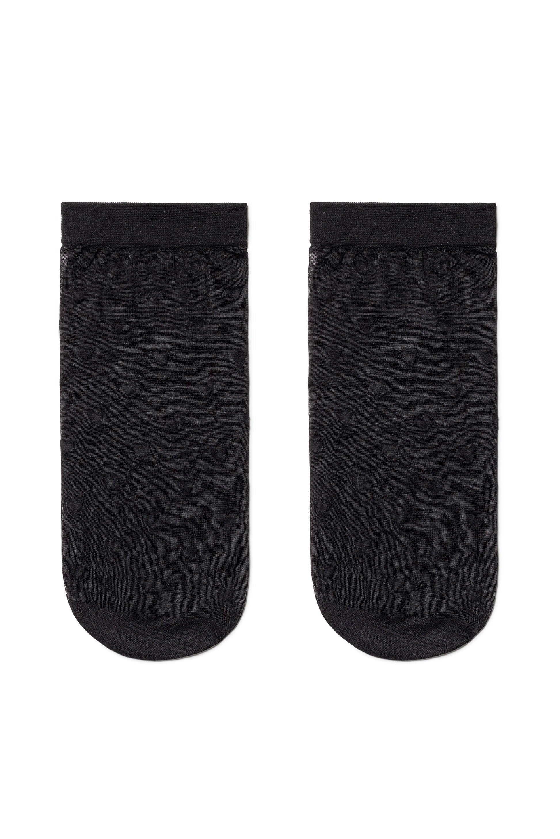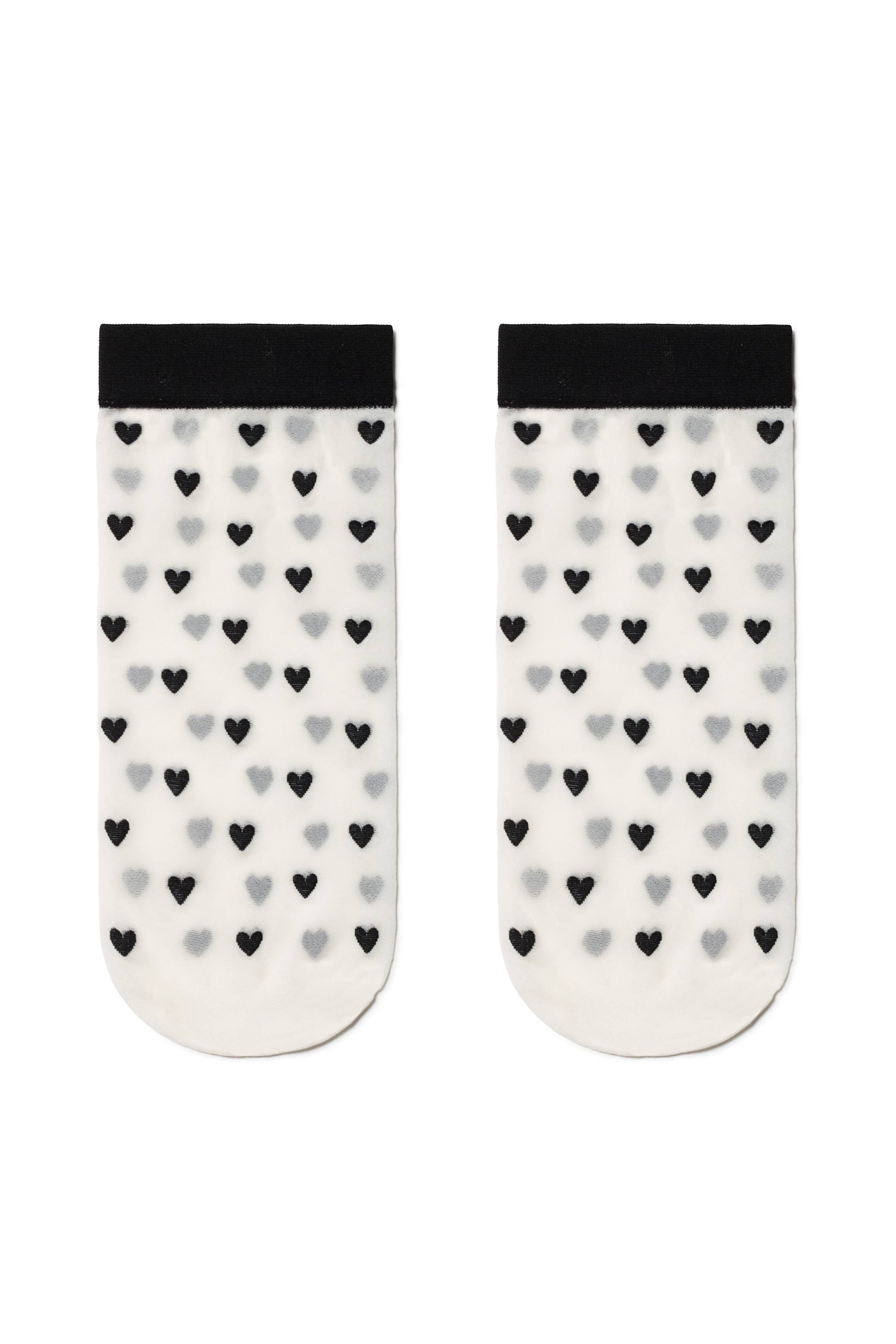 Thin FANTASY socks with a heart pattern add a romantic touch to a modern girl's look. Lightweight, elastic, and comfortable for all-day wear.