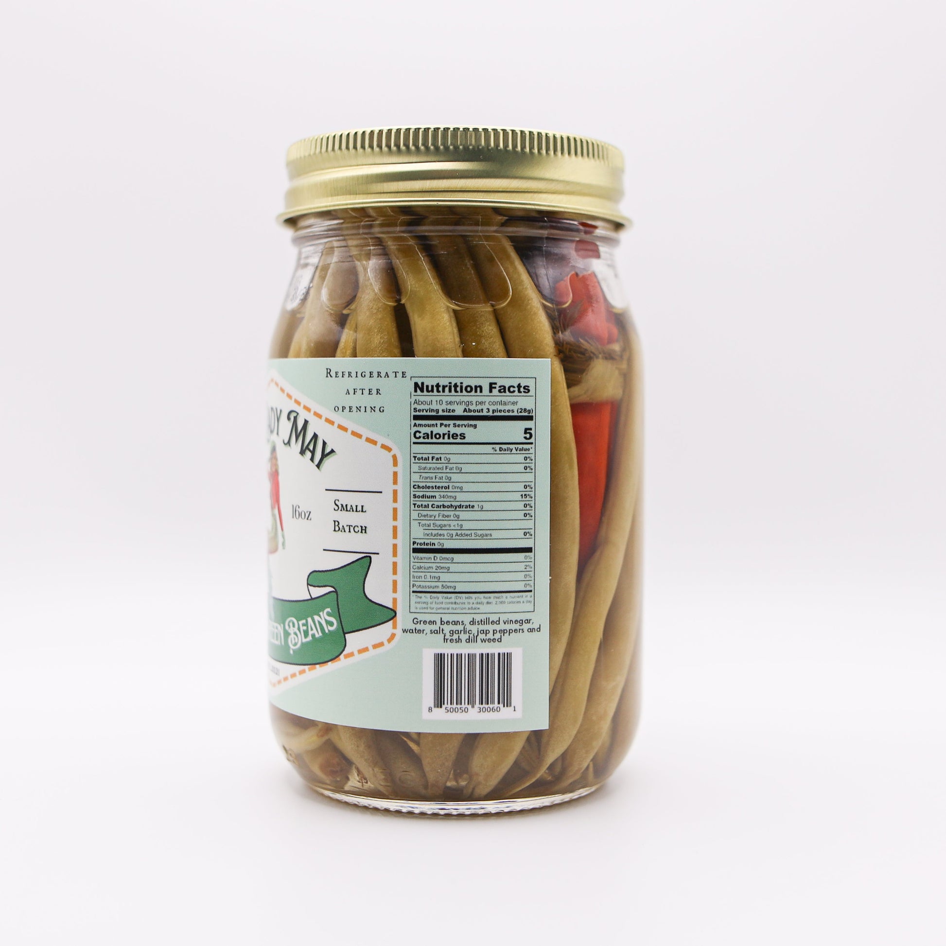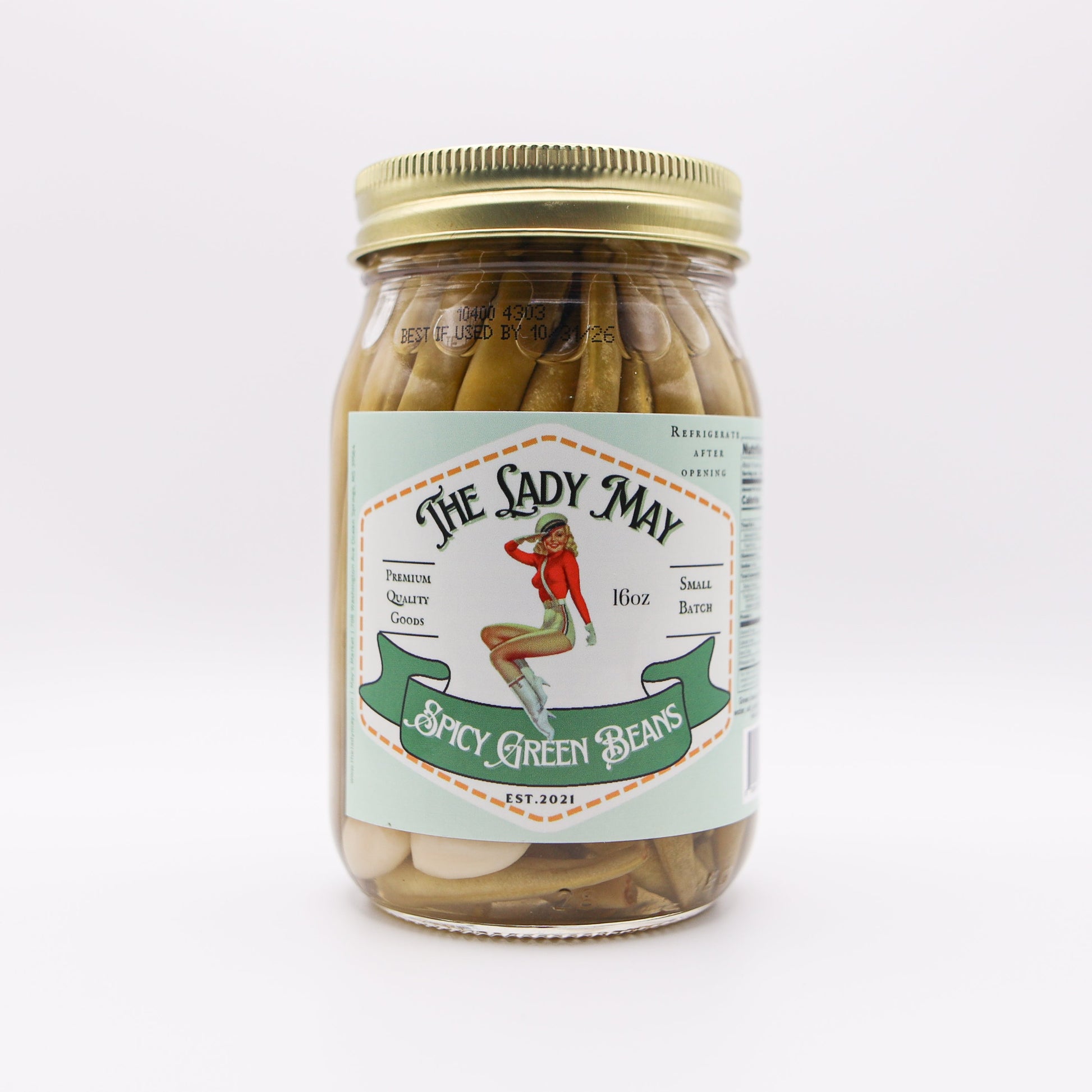 The Lady May's Pickled Snap Beans are hand packed with flavor, fresh peeled cloves of garlic with a touch of jalapeño heat. You can't have a Bloody Mary without these! Great to eat right out of the jar or fry up as a Southern Side.
