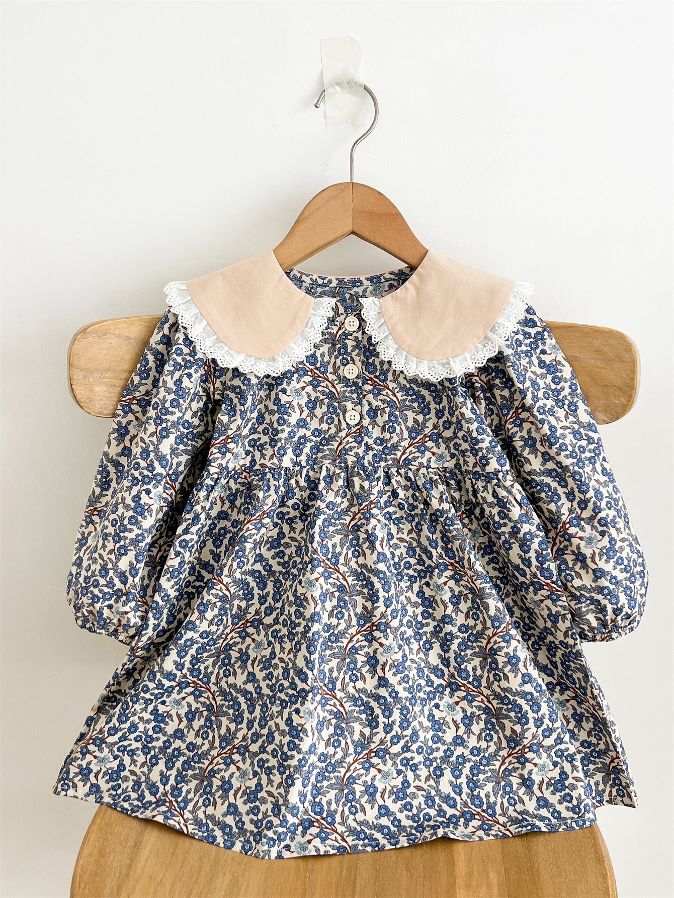 This charming long-sleeved dress features a vintage floral print perfect for spring and autumn adventures. The delicate lace collar adds a touch of whimsy, making it ideal for stylish girls who love to twirl and play. Soft and comfortable, it’s a delightful choice for everyday fun or special occasions.