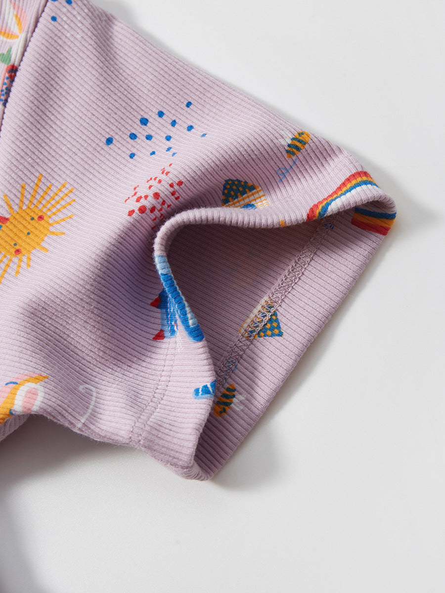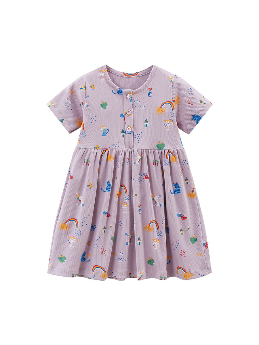 Spring And Summer Baby Girls Short Sleeves Rainbow Animals Floral Cartoon Print Dress