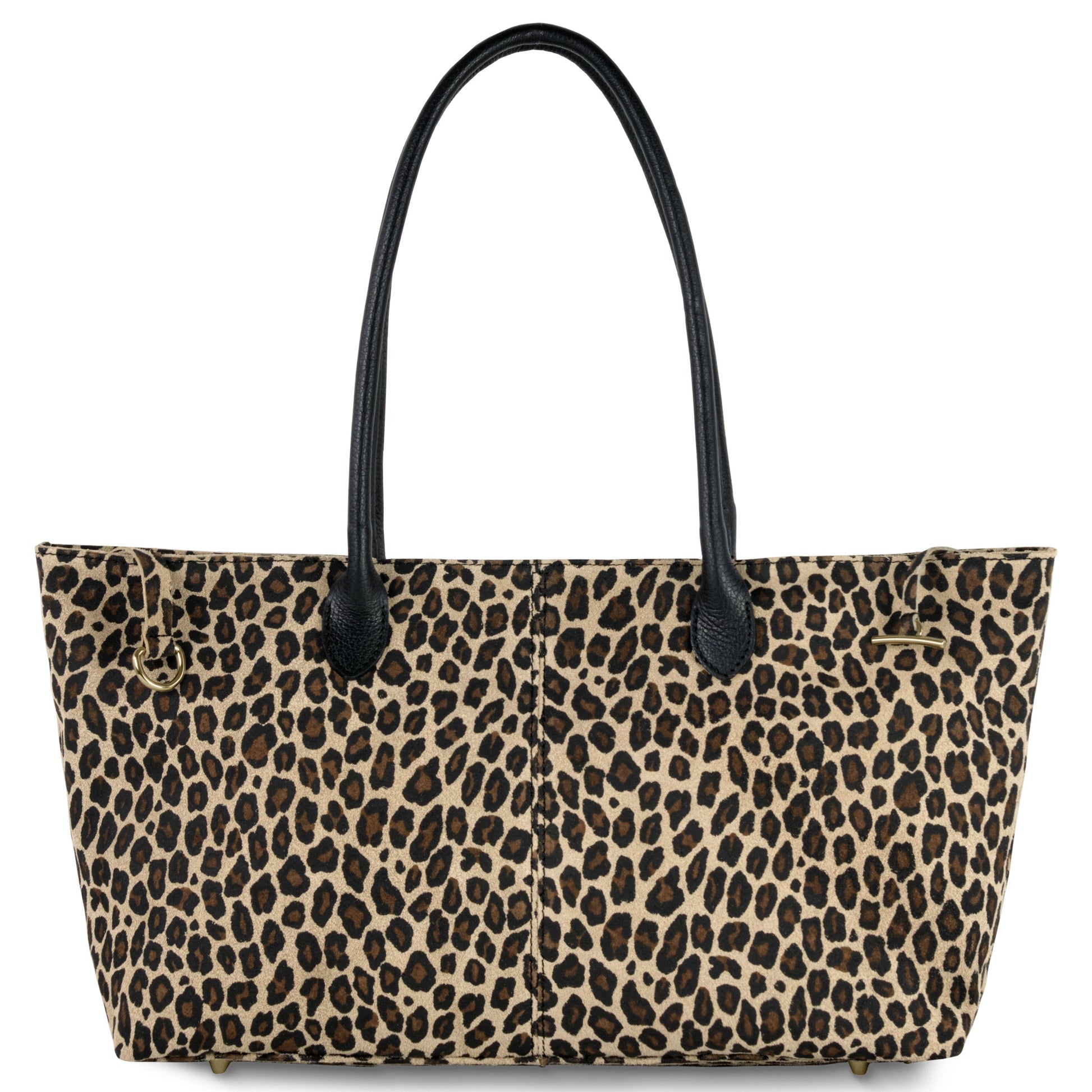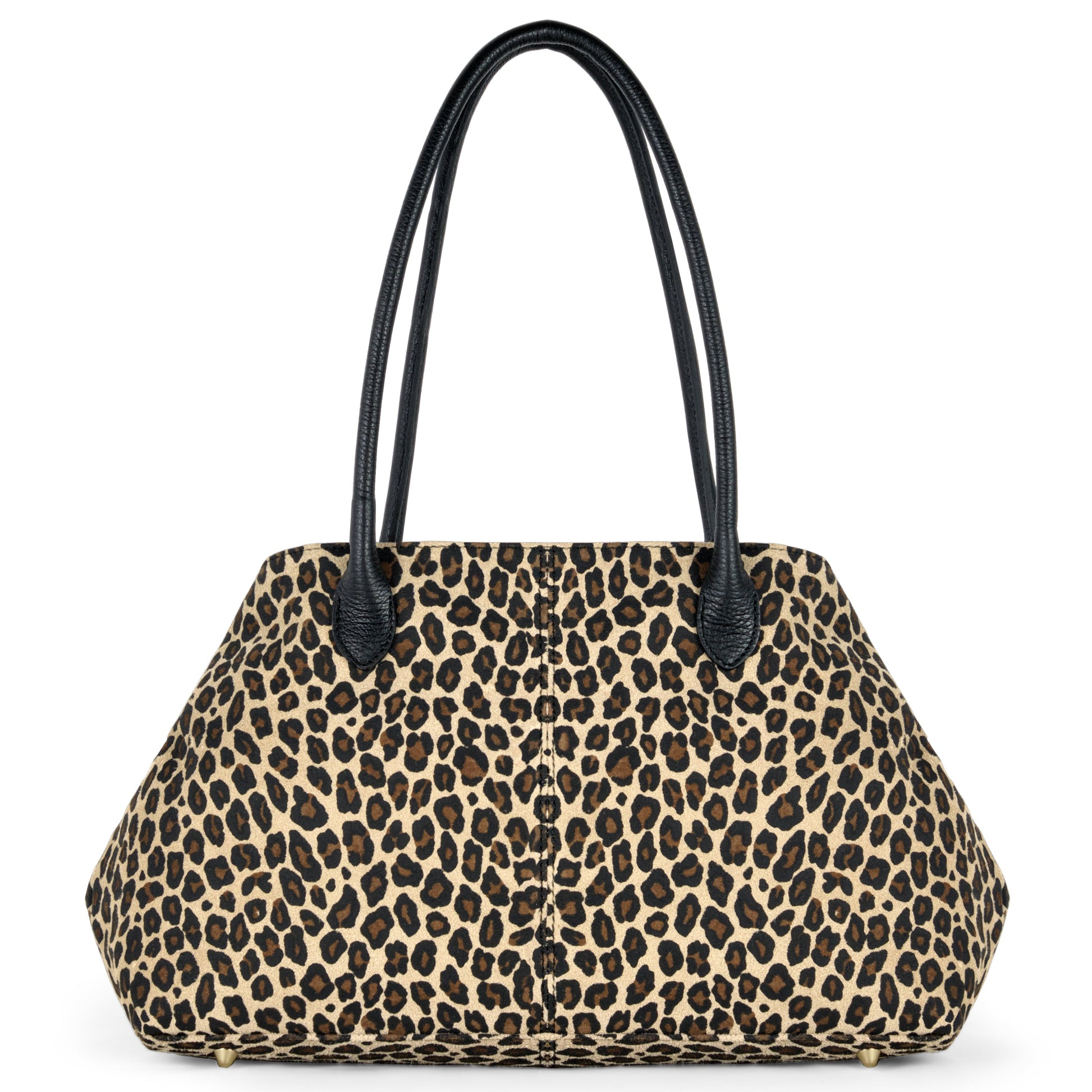 This suede tote has long top handles for comfortable carrying on the shoulder or arm. It rests on protective metal feet and keeps its soft shape thanks to carefully structured seams.