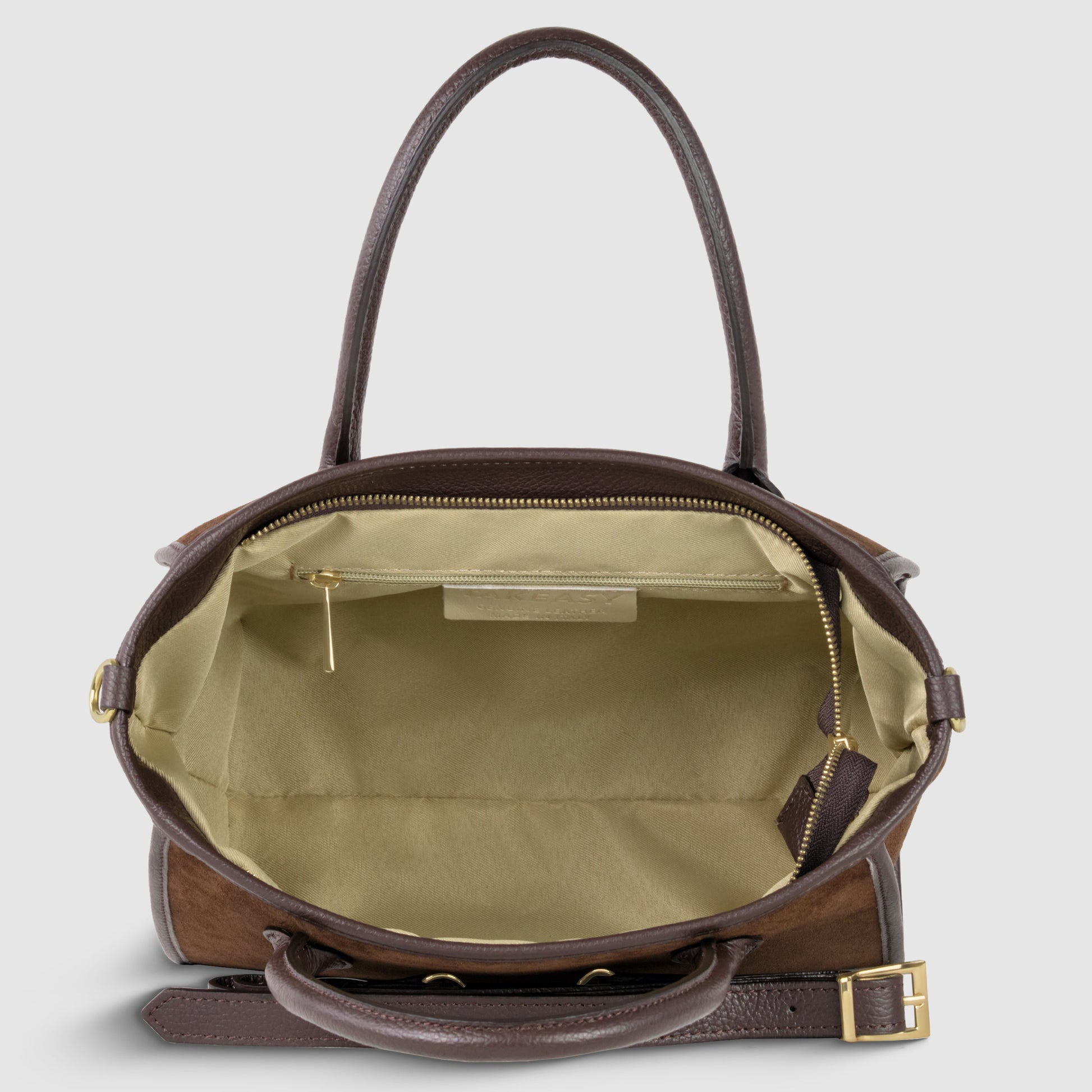 Crafted from Suede Leather with a velvety texture that catches the light, and accented with Calf Leather trim for strength and style. The leather is treated using traditional Florentine methods for durability and beauty.