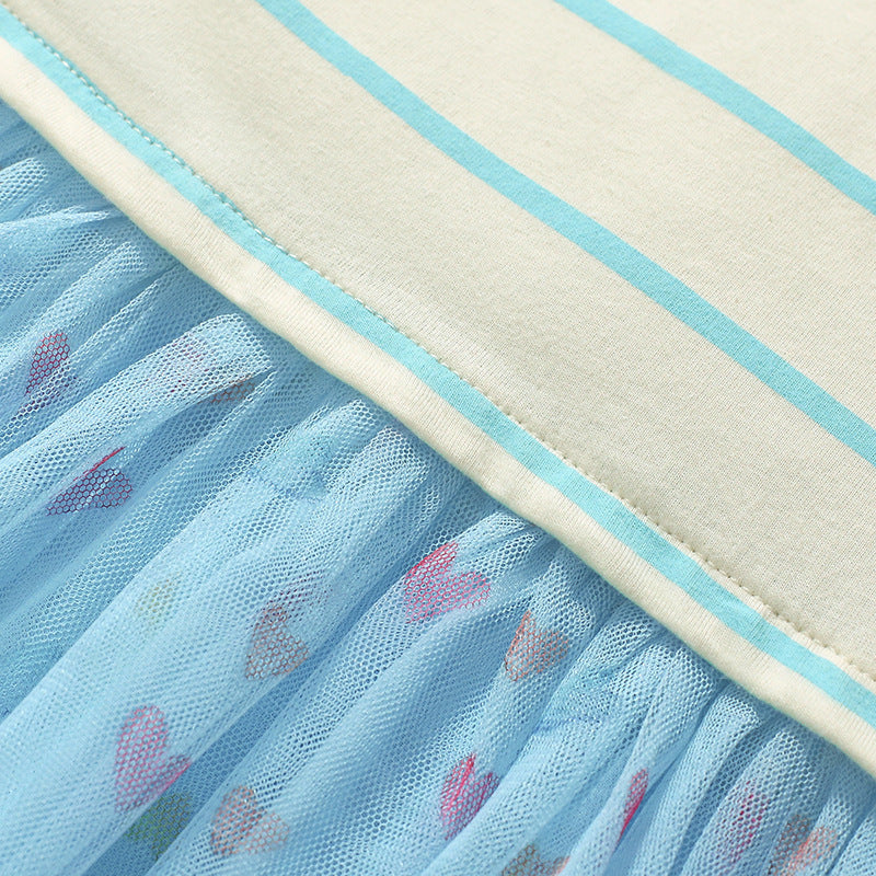 Brighten up sunny days with this playful striped dress featuring colorful heart patterns and short sleeves. Perfect for stylish girls, it combines comfort and fun, making every summer moment more cheerful and vibrant.
